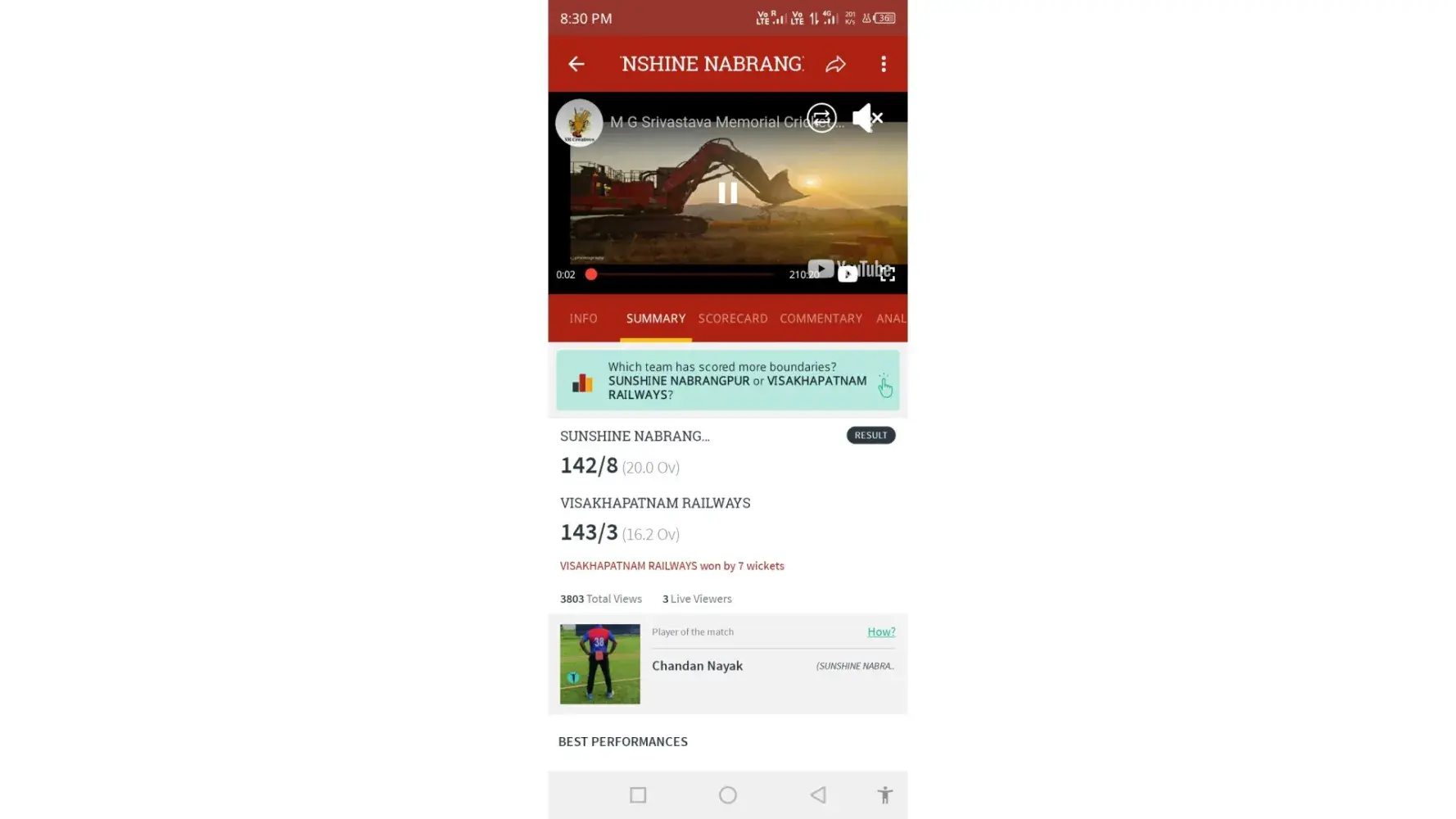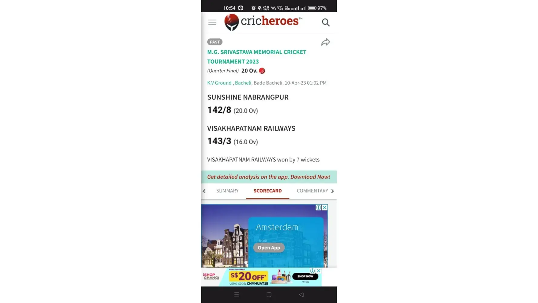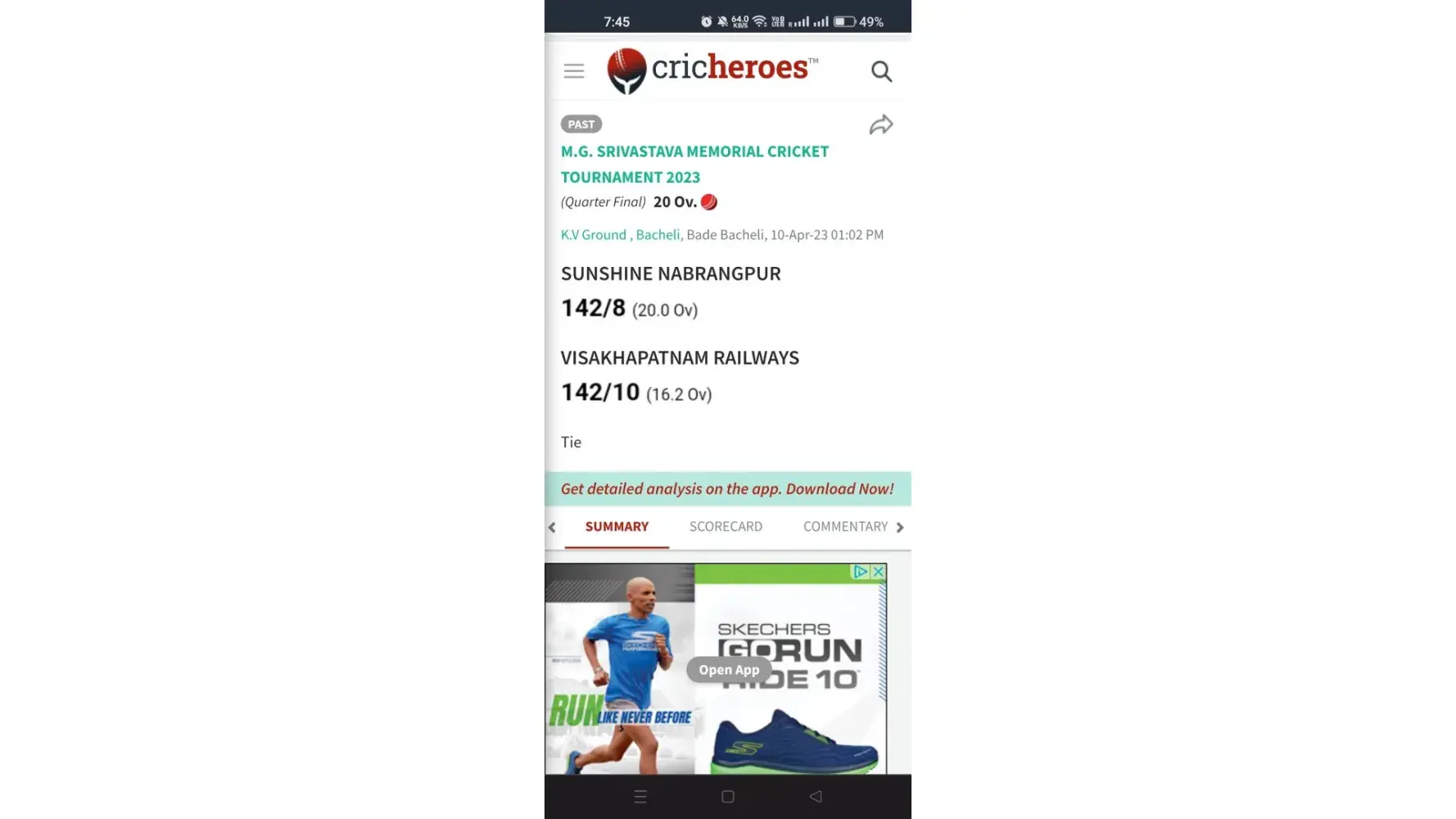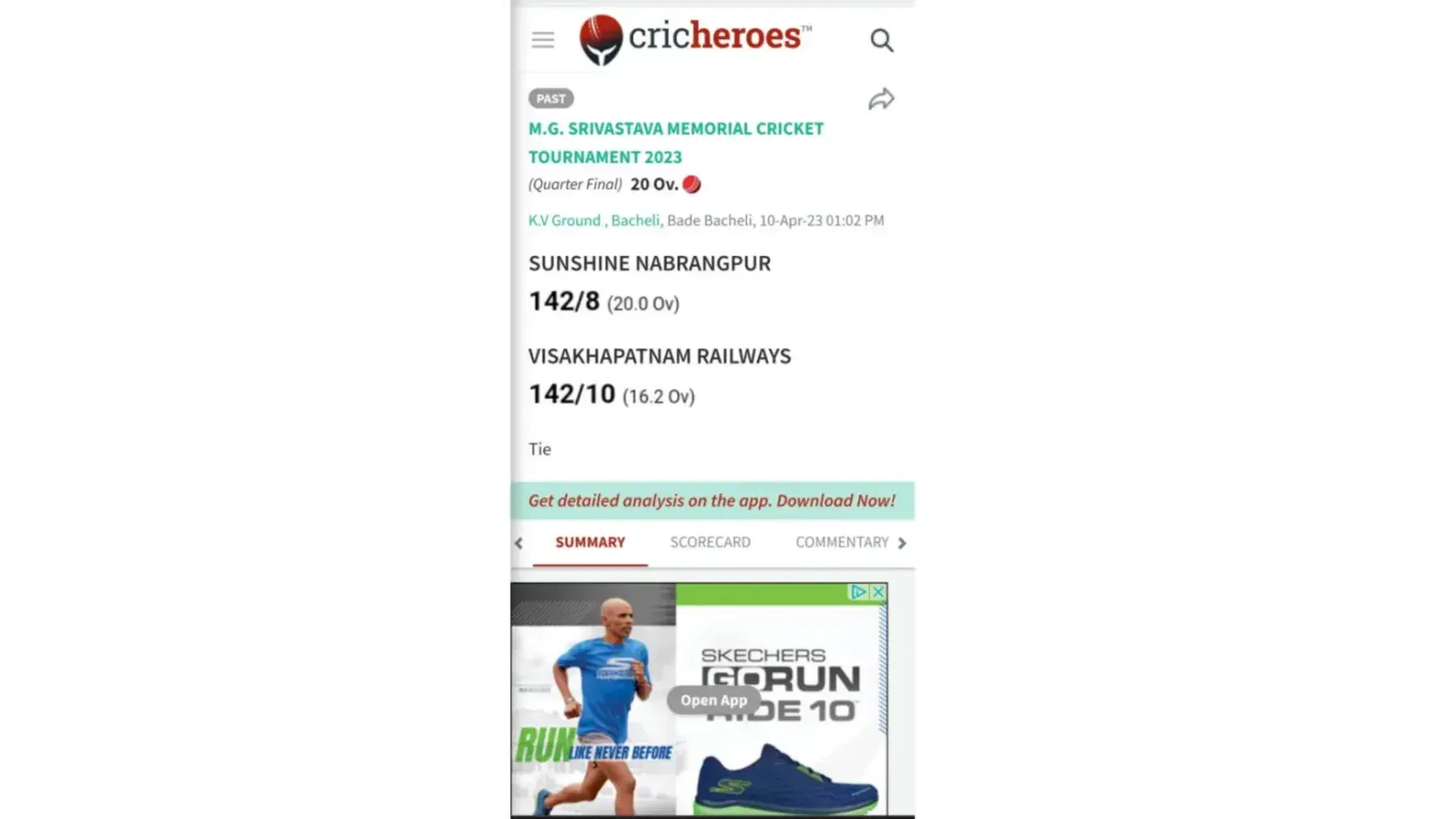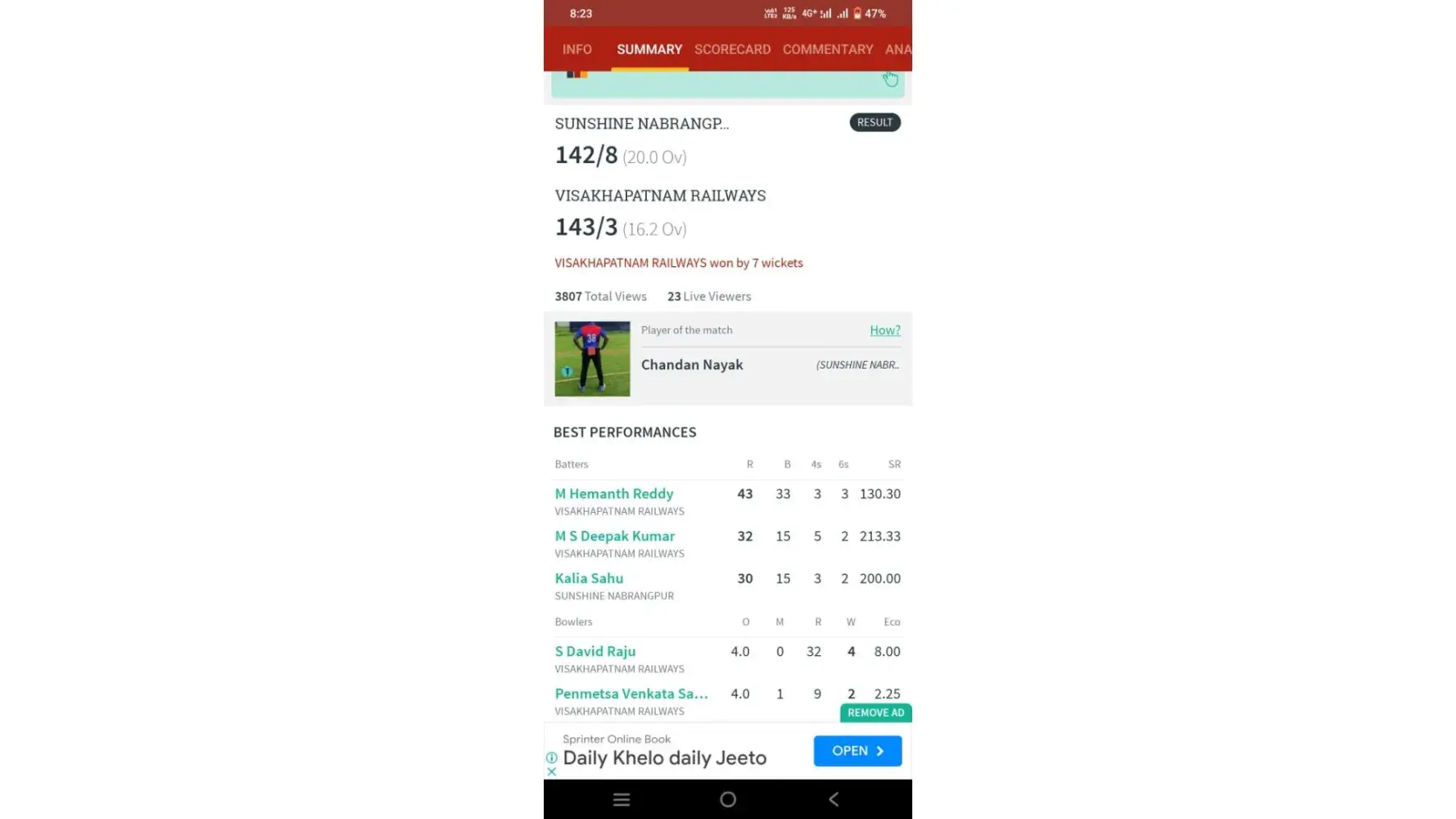 Official Scorecard - https://cricheroes.in/scorecard/6391660/M.G.-SRIVASTAVA-MEMORIAL-CRICKET-TOURNAMENT-2023/SUNSHINE-NABRANGPUR-vs-VISAKHAPATNAM-RAILWAYS