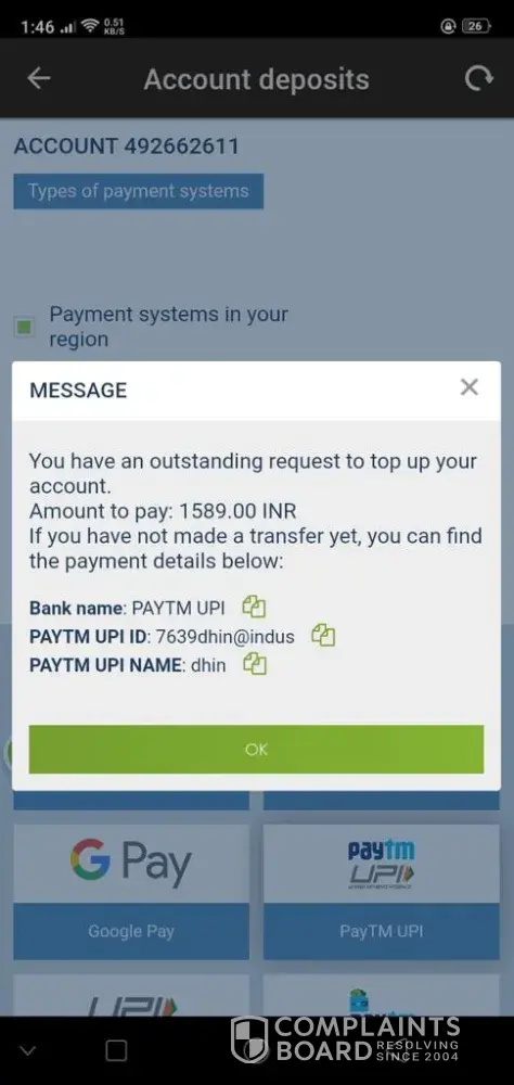I'm Kindly informing you that the Deposit amount Rs 1589 was Not credited to my 1xbet account number ([protected]) , and the payment was successfully showing and money was debited from my Paytm account. So please check and credit to my 1xbet account([protected])