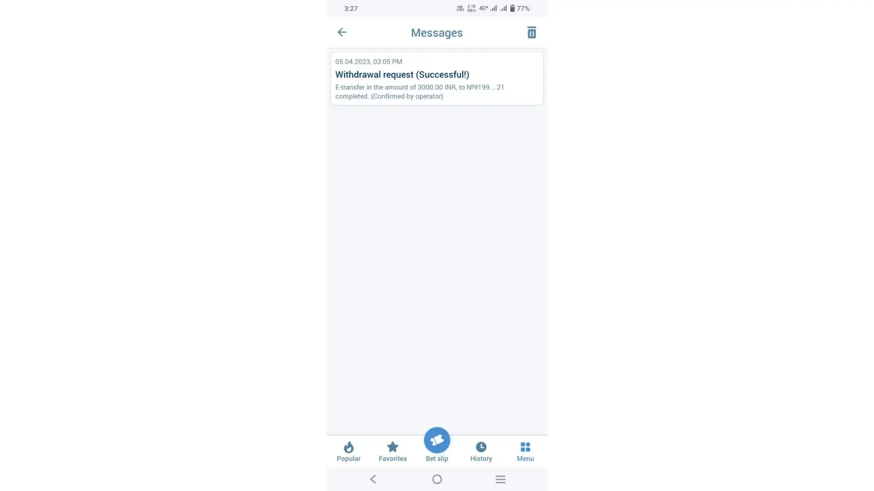On 14-04-2023 1xbet gaming app notification showing that my withdrawal of rupees 50000 is successful but money not reached in my bank account till now.