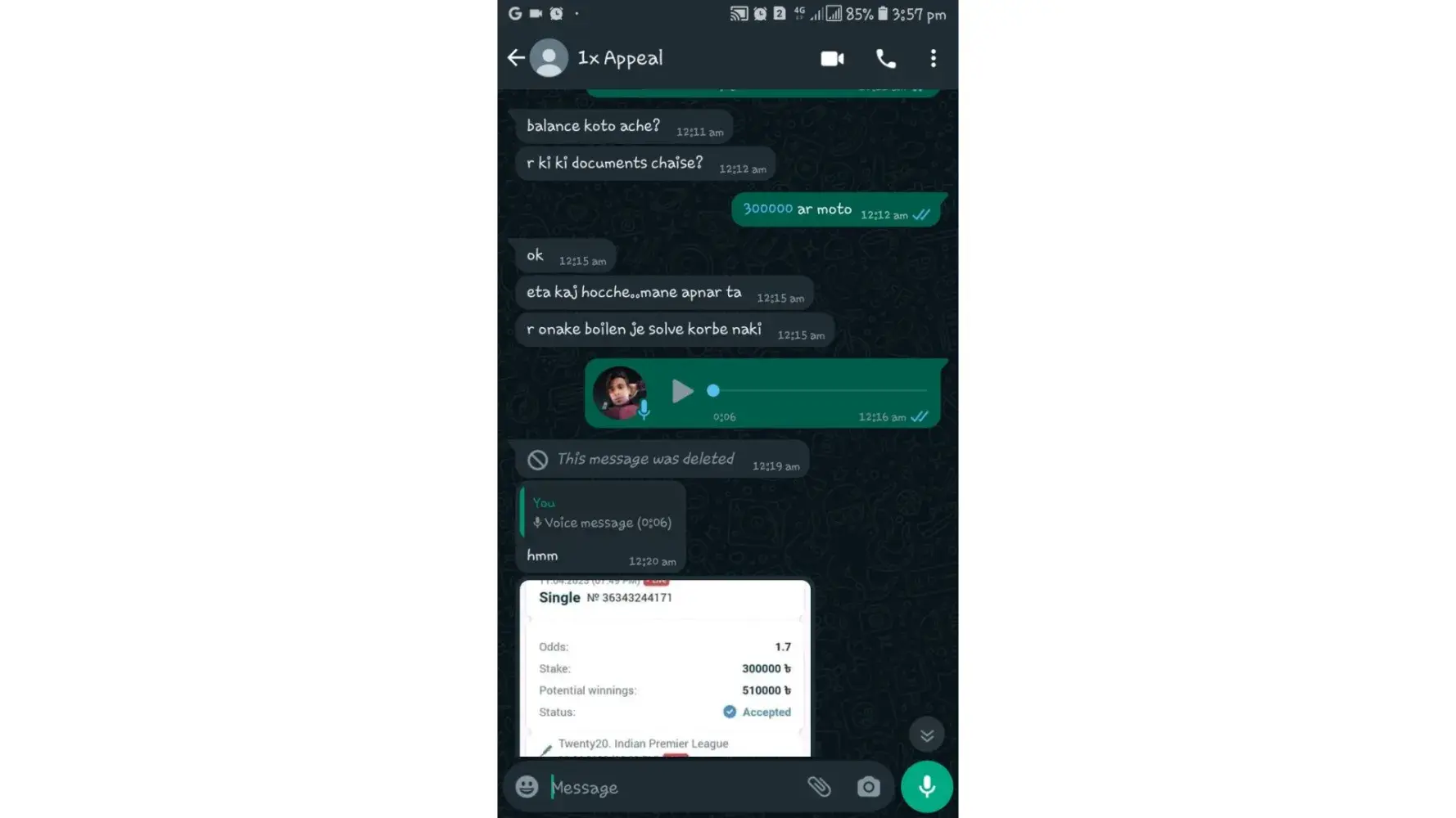 Don't believe 1x bet two withdraw scam 20 days completed but amount was not credited yet to my account or id