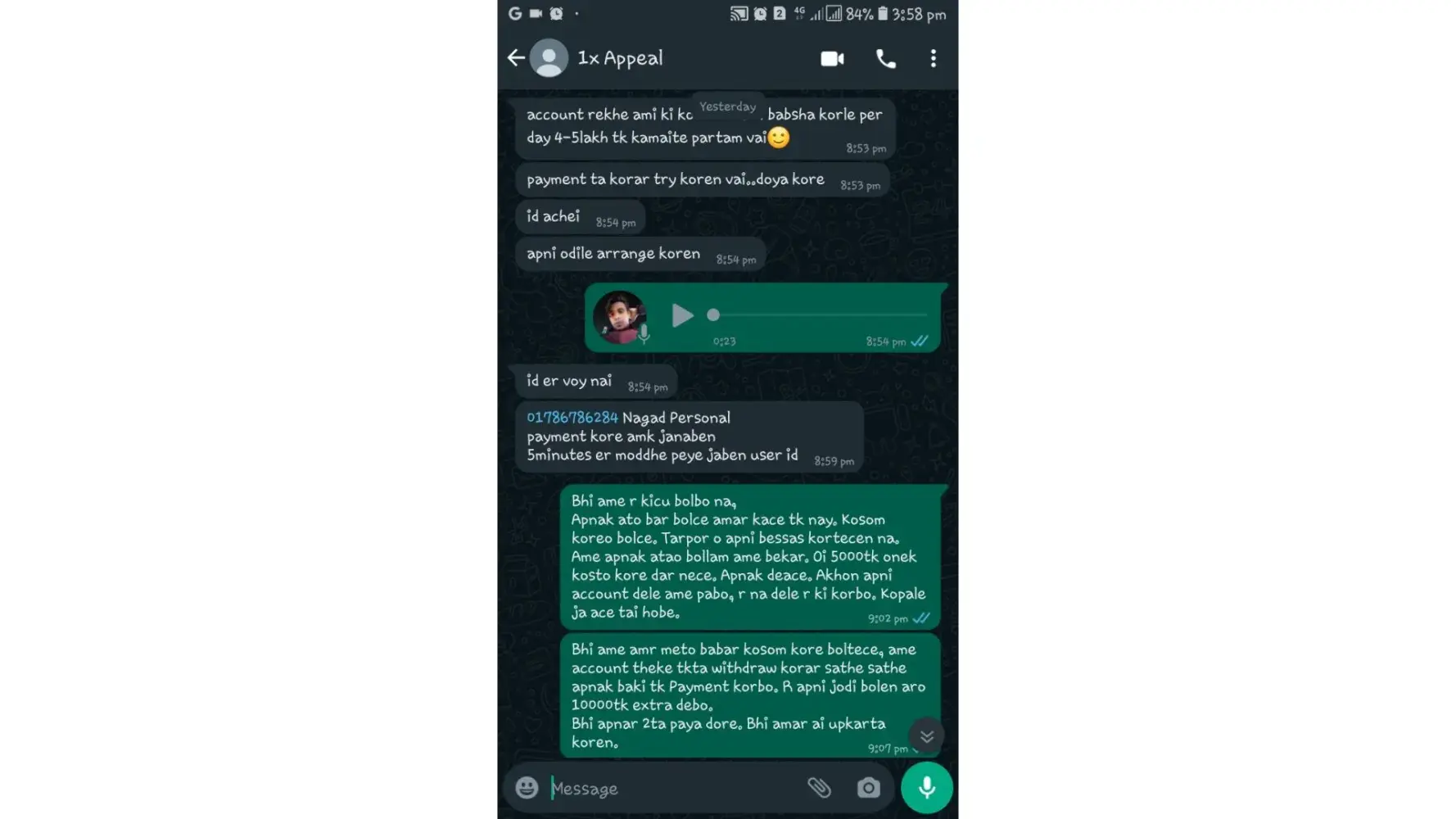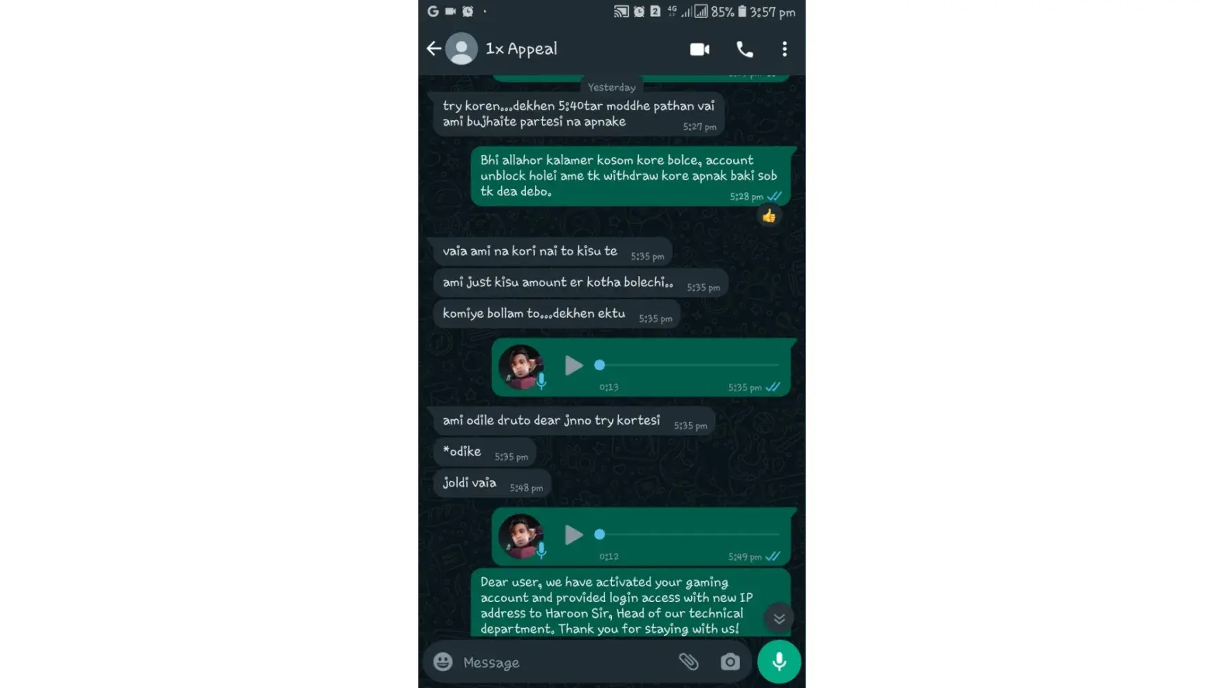 My account has been blocked by the company. I tell my problem on this complaints board. Then they message me the whatsapp number of a person. When I contacted him, he told me that no gambling addiction certificate is required to fix the account. He says it will cost 13378 rupees to take it. I gave him 5000 rupees. He says he will take the remaining money if the account is fine. Now he killed my 5000 rupees.What is the point of talking about problems here. not resolvedÂ