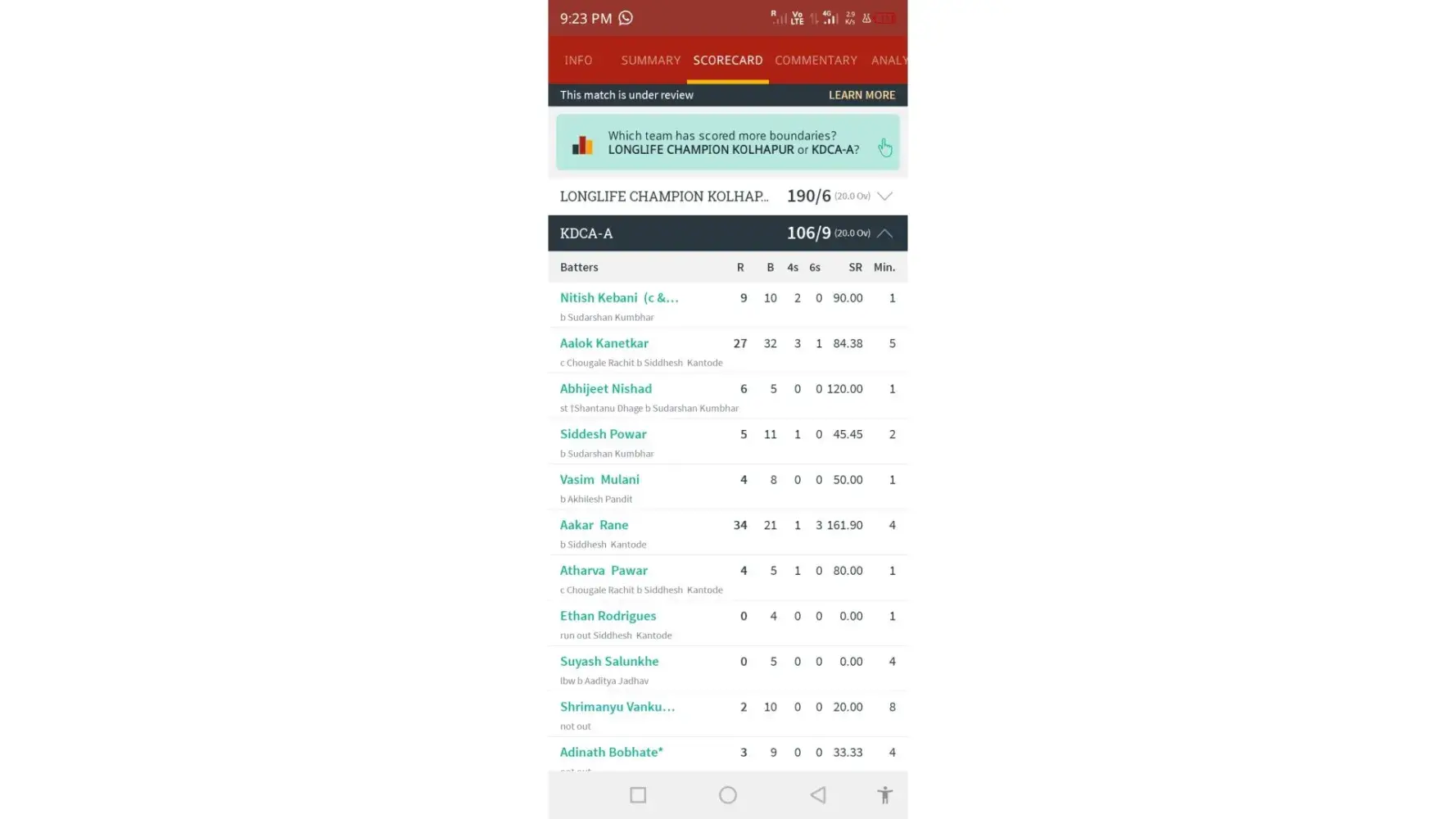Dear 1xbeg you sent me wrong link match .I'm talking about longlife champion and Kdca-a team match please check scorecard also