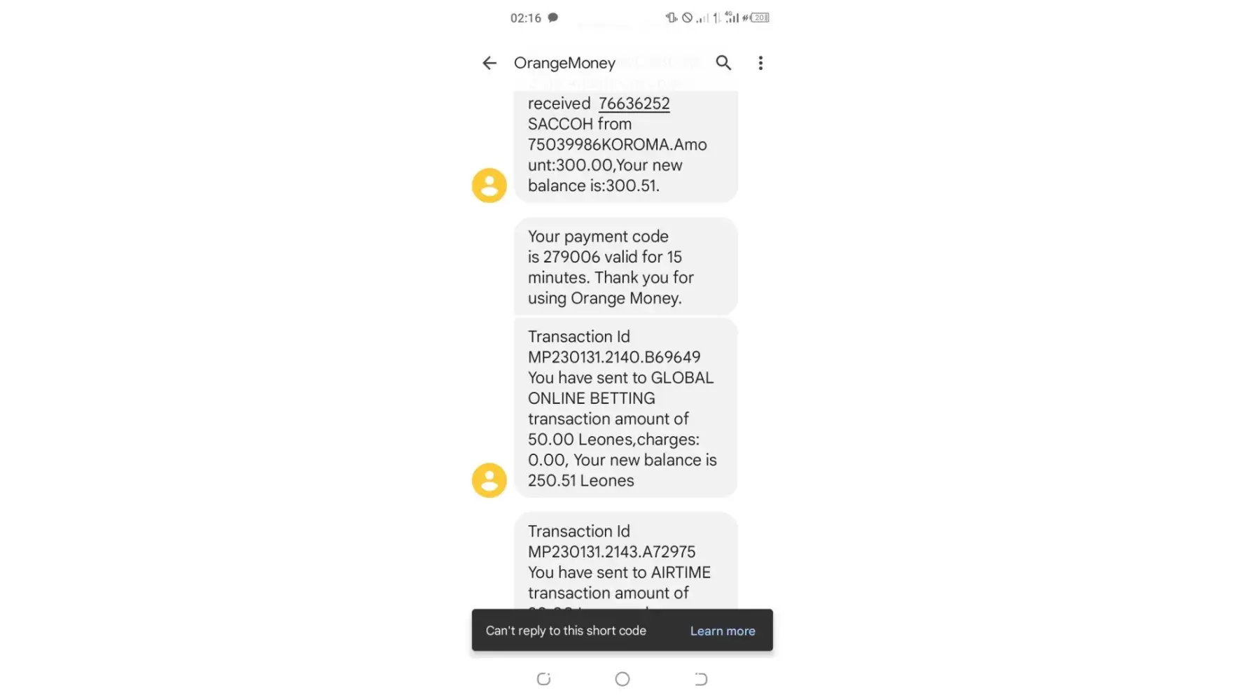 And with the transaction Transaction Id MP230131.2140.B69649 You have sent to GLOBAL ONLINE BETTING transaction amount of 50.00 Leones, charges: 0.00, Your new balance is 250.51 Leones.
