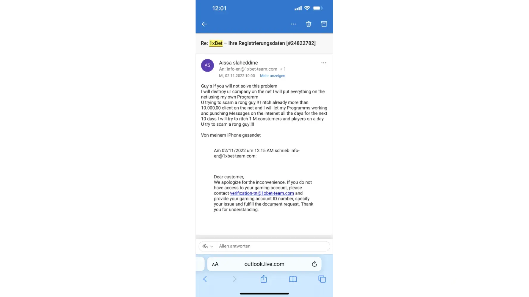 After geting my money they block my account and they keep my money for more than 6 Month without answer ! I make already complain against 1xbet and you send me Watsapp contact … (look the attached file) after contacting this Watsapp number the guy how supposed to help me he threatens me …. And he say they will panisched me ! I don’t know how ? But I thing he mean they will not gives my money back !