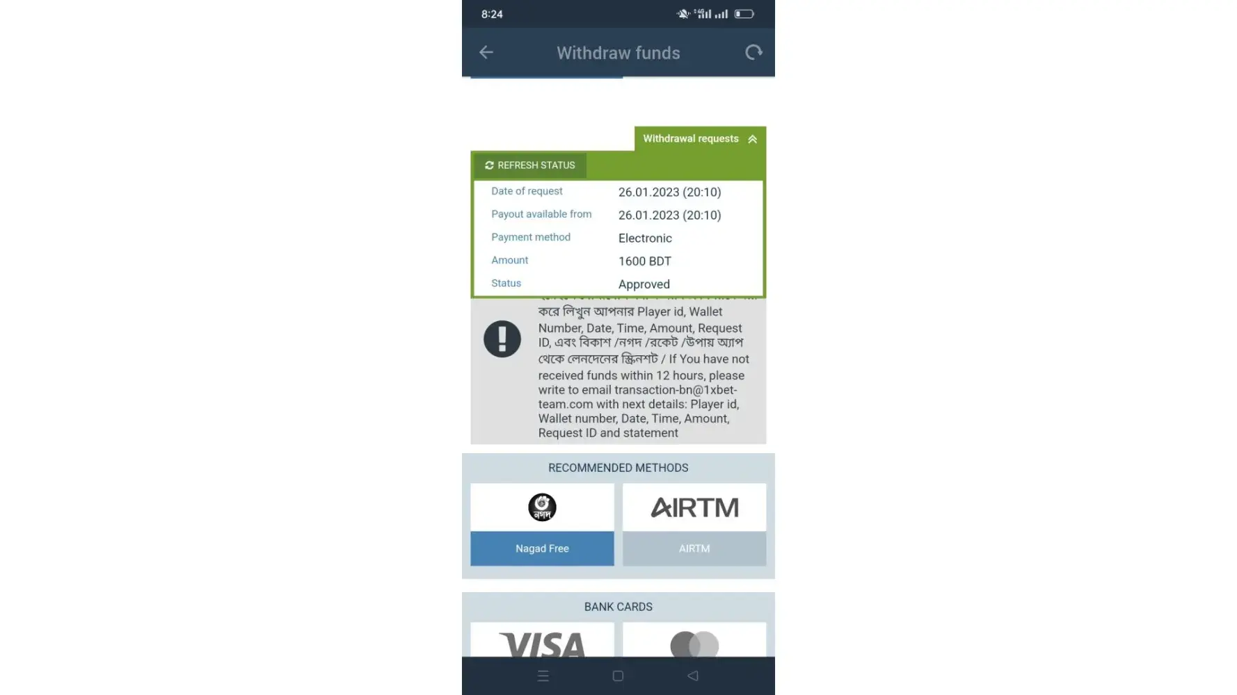 Hello sir i am from bangladesh.i deposit in 1xbet account by nagad payment system.almost 24 days gone.i have not get my money.i have email in [protected]@1xbet-team.com but they have reply me yet.please help me,i am giving all necesaary information below