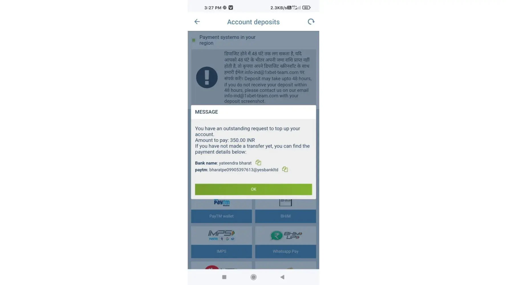 payment from upi fast on 1xbet amount 2000 after successful payment then in game app said rejected by operator, money duducted from account and successful paid to 1xbet but 1xbet did not add this amount