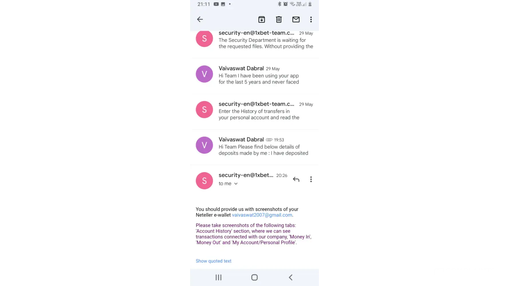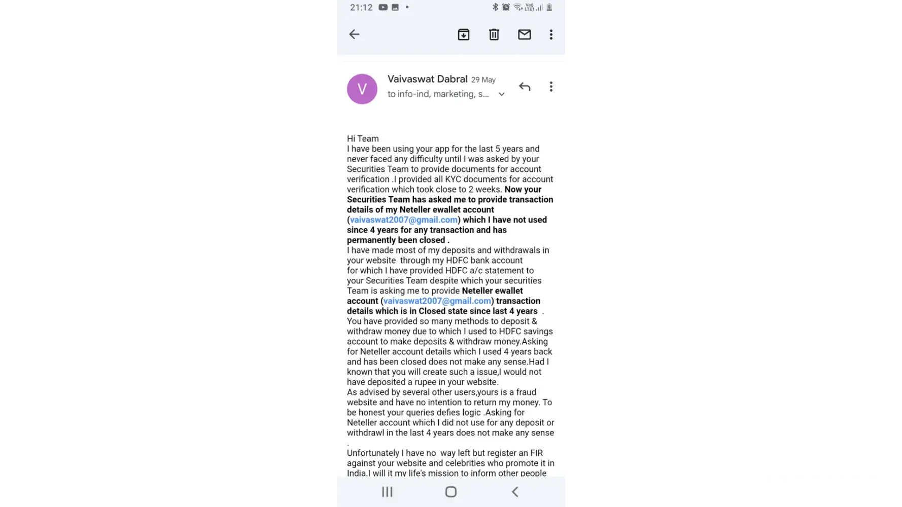 As requested i forwarded my pan card which took 2 weeks to be verified. Then your team asked me to provide my Neteller account transaction details ([protected]@gmail.com).