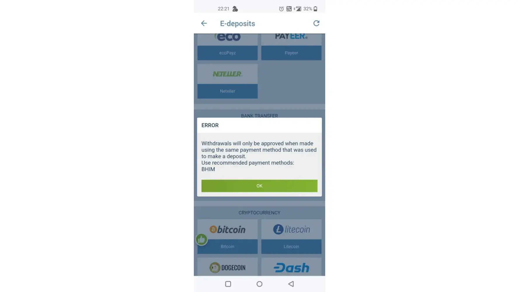 Recently I have deposited through Neteller and now I am unable to withdraw a funds to Neteller it is showing some error message