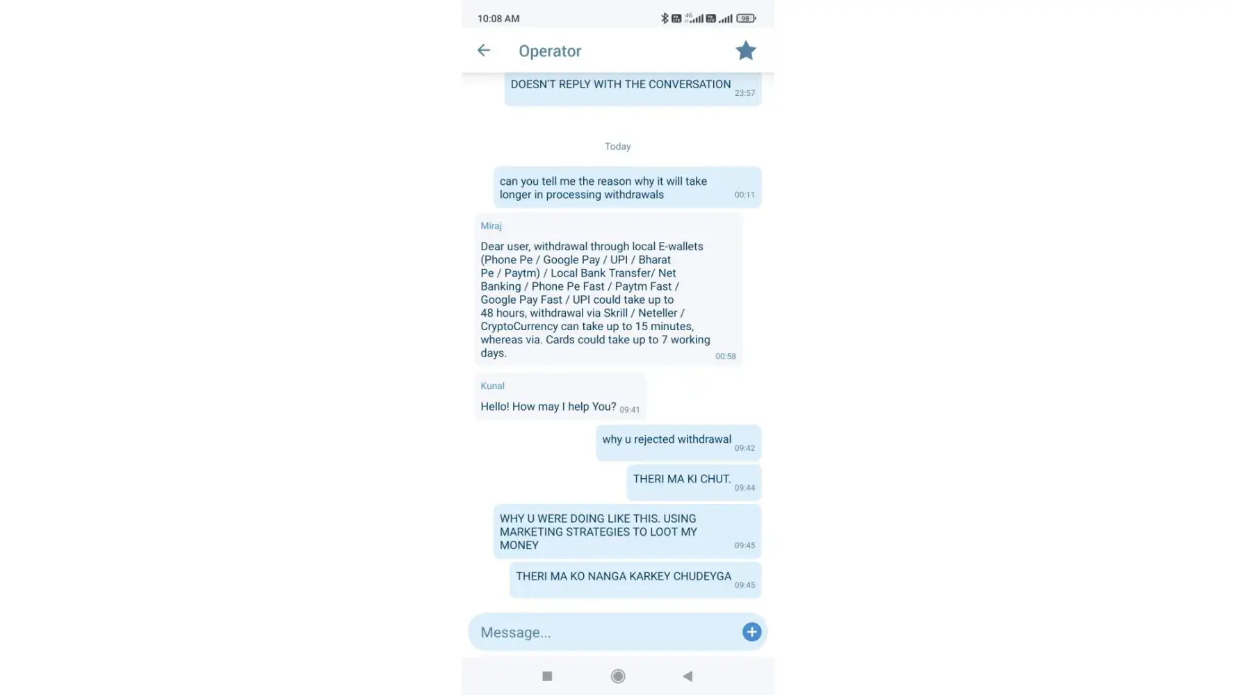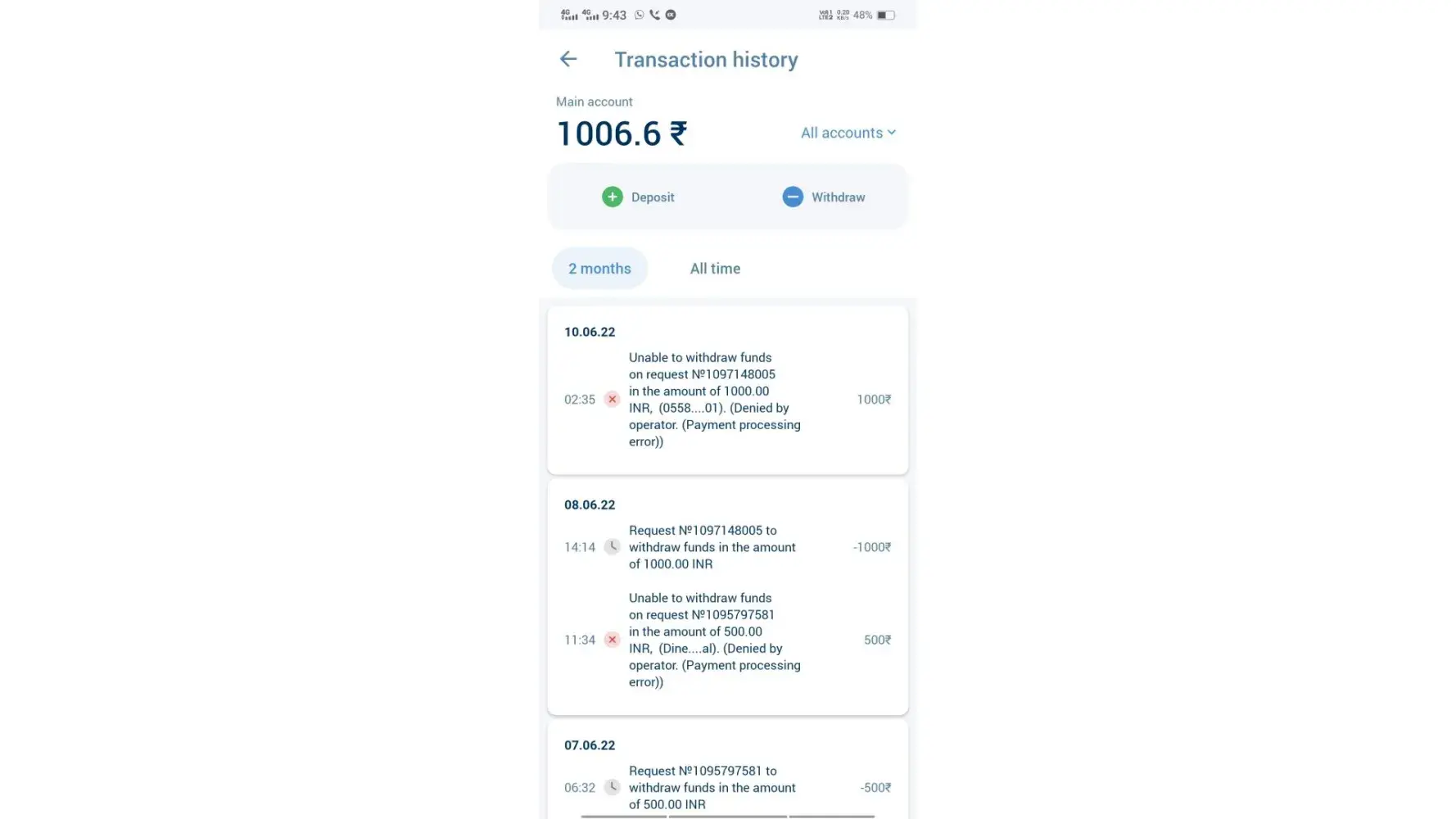 And my withdraw to bank or UPI your team is keep on rejecting my withdraw