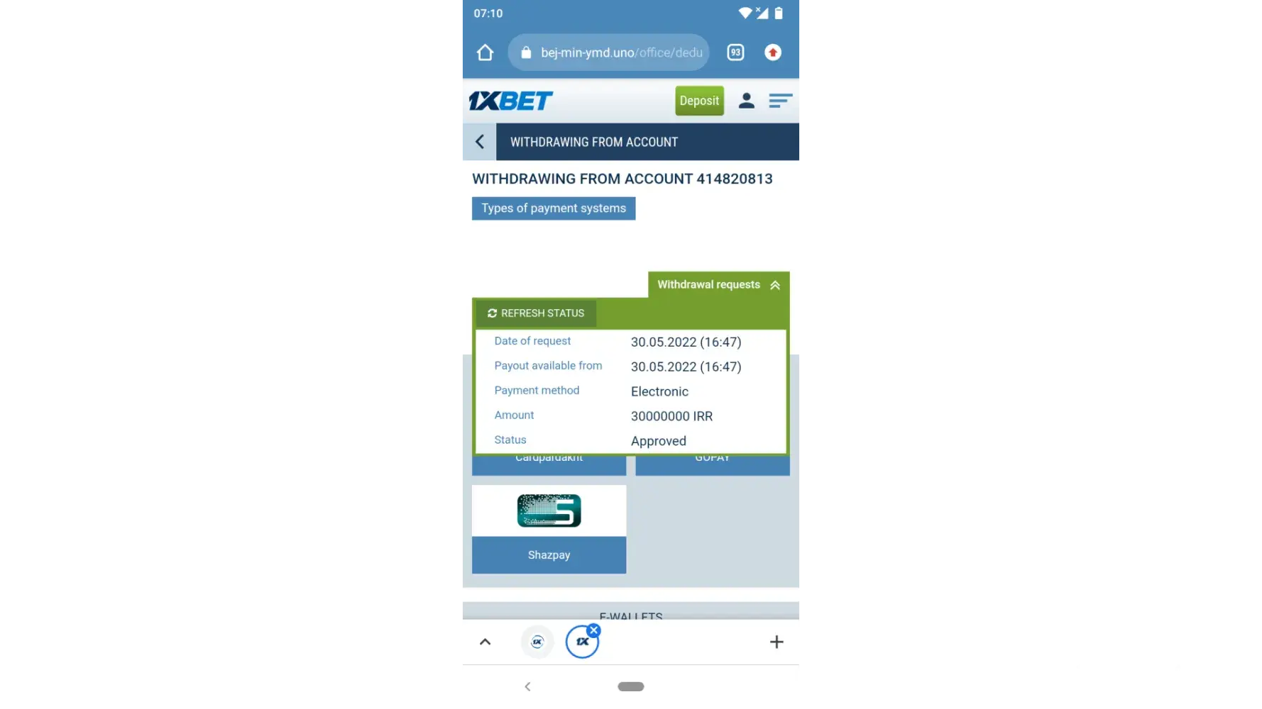 Untill withdraw got successfully I won't play or deposit and I will suggest my friends not to deposit and play 1x is a fraud company they are not allowing to me a withdraw