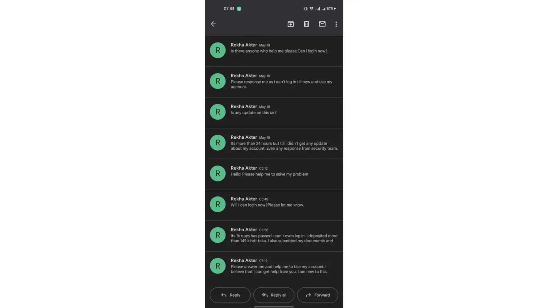 I gave a message and gave a screenshot with all the details. I don't see any solution. What kind of service is this? Refrain from depositing everyone
