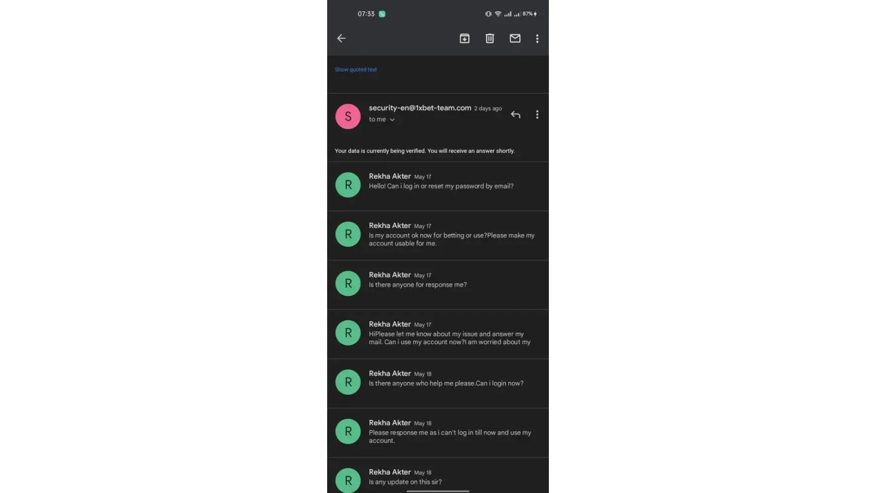 I thought, maybe theres some technical issues so then i Mail the issue with every required evidence and steps following by there given instruction, to there deposit issue team [protected]@1xbet-team.com