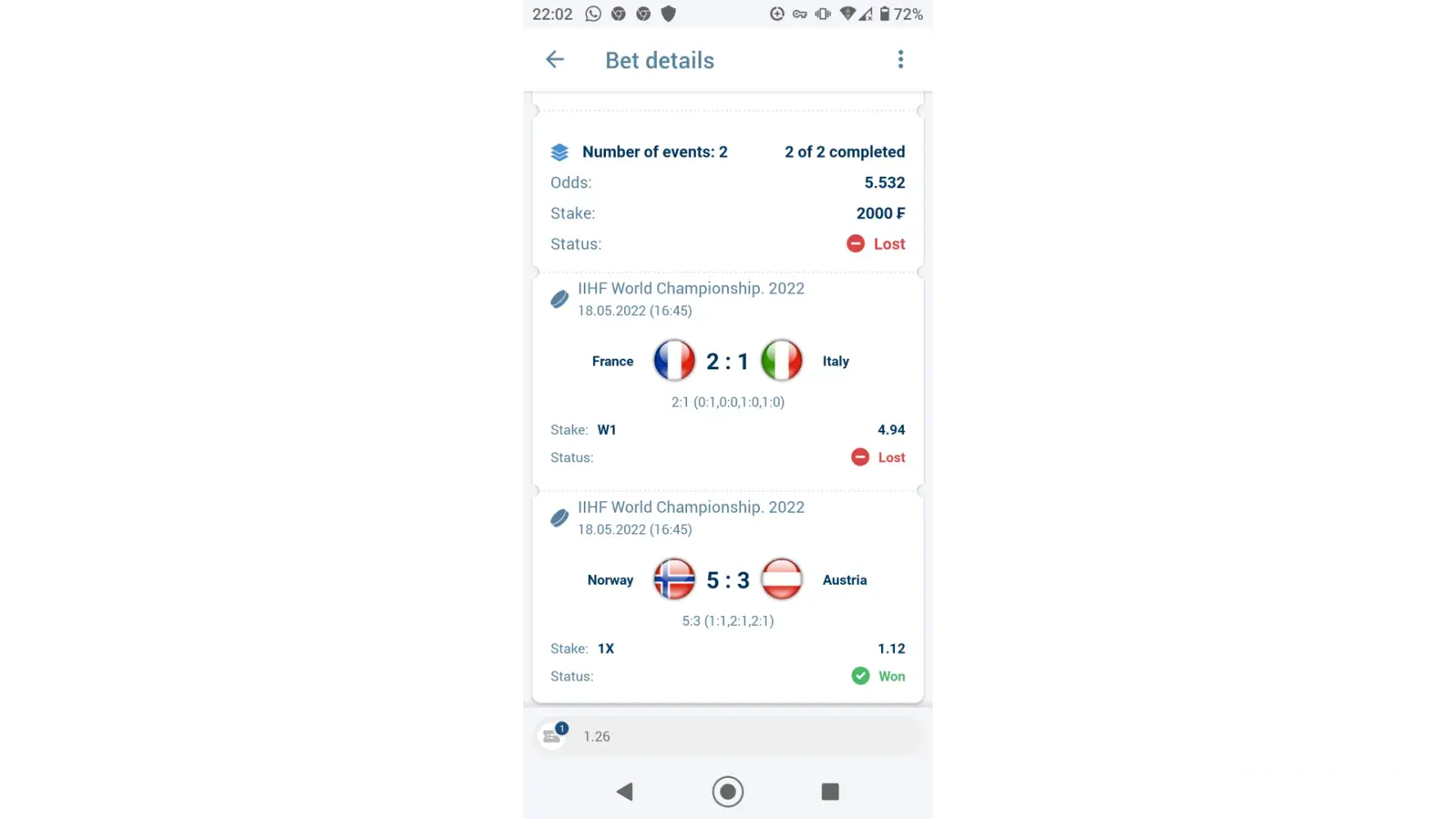 Hello good morning I have a complain about a bet slip that I played and won on the 18/05/2022 but instead 1xbet said I lost were as it can be visible seen that I won the ticket.please I will like the ticket to be reviewed and the money send to my account.the bet slip no is ([protected])