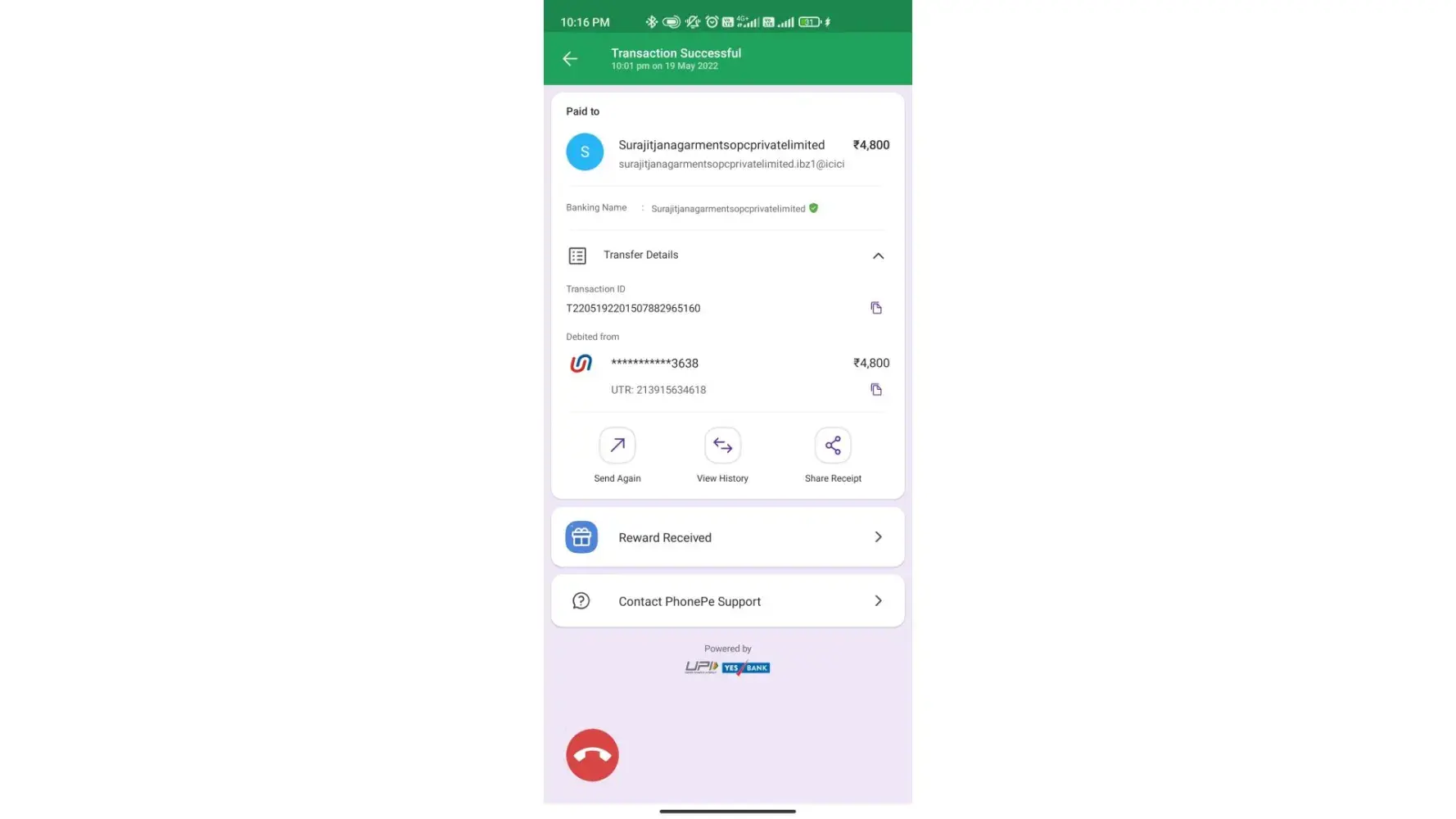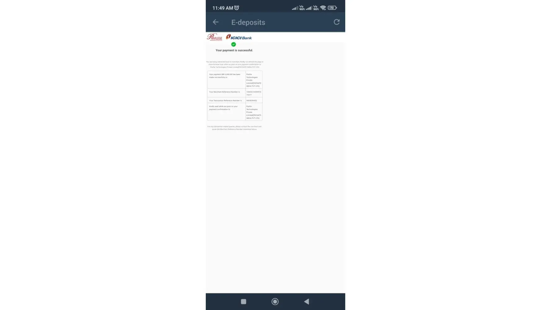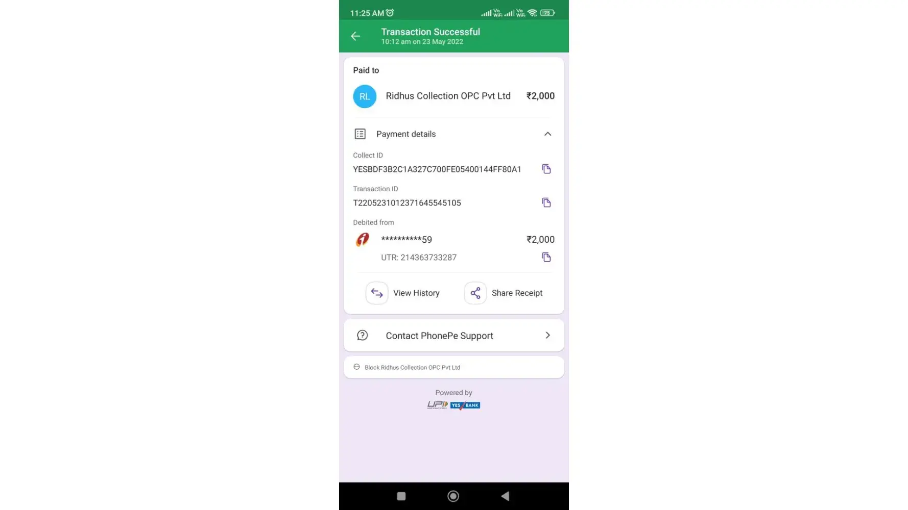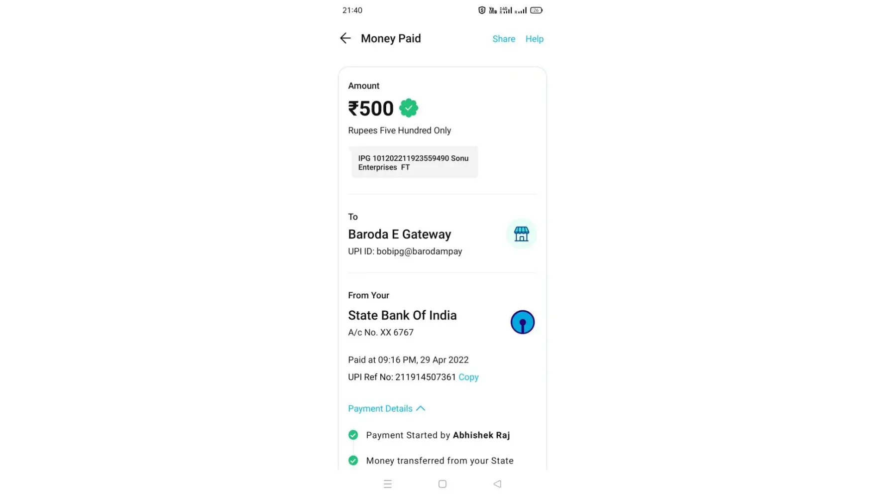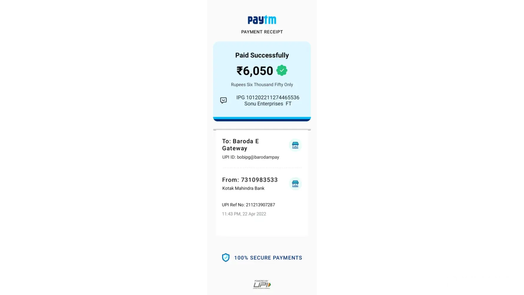 Here's my upi payment screenshot of that deposit