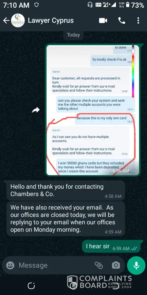 My winnings 50000 cedis was taken away from me and the money deposited since registration was refund(6500).