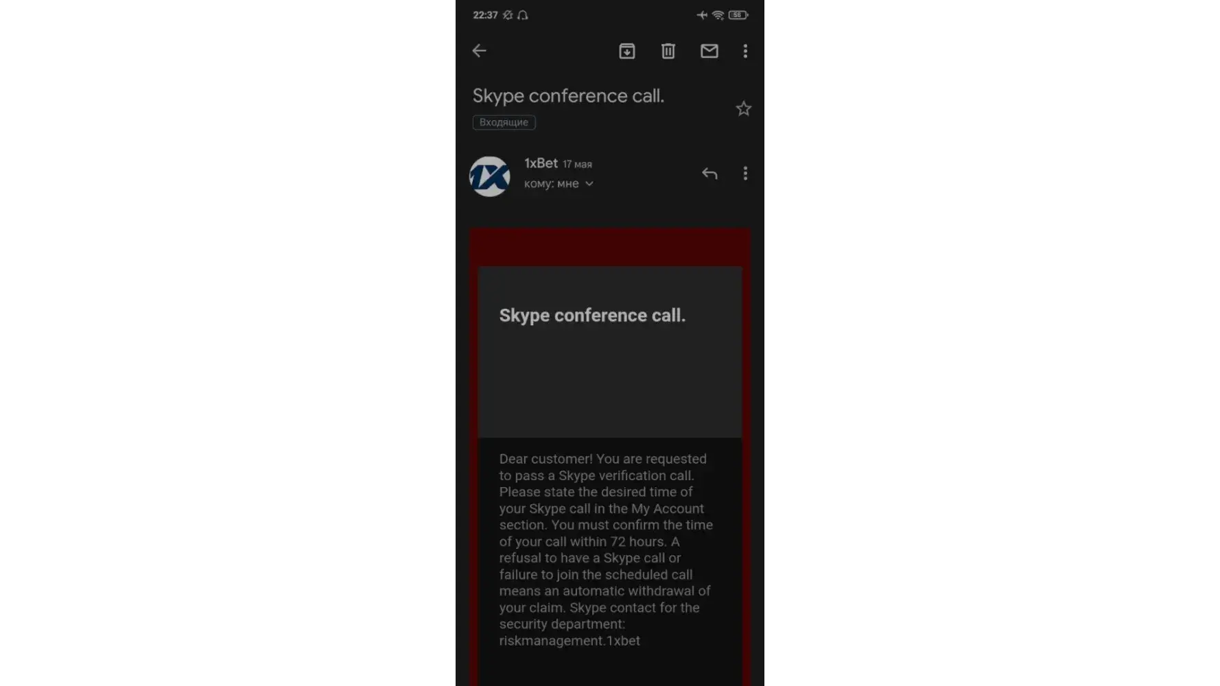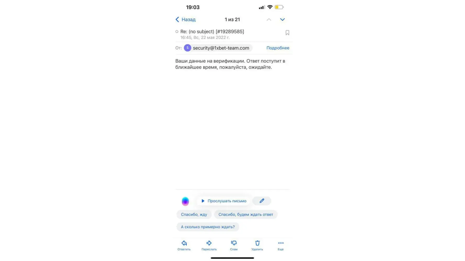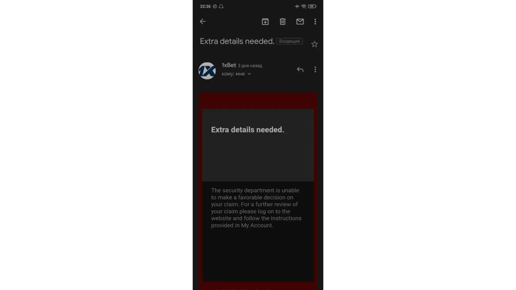 I also mailed security team [protected]@1xbet-team.com