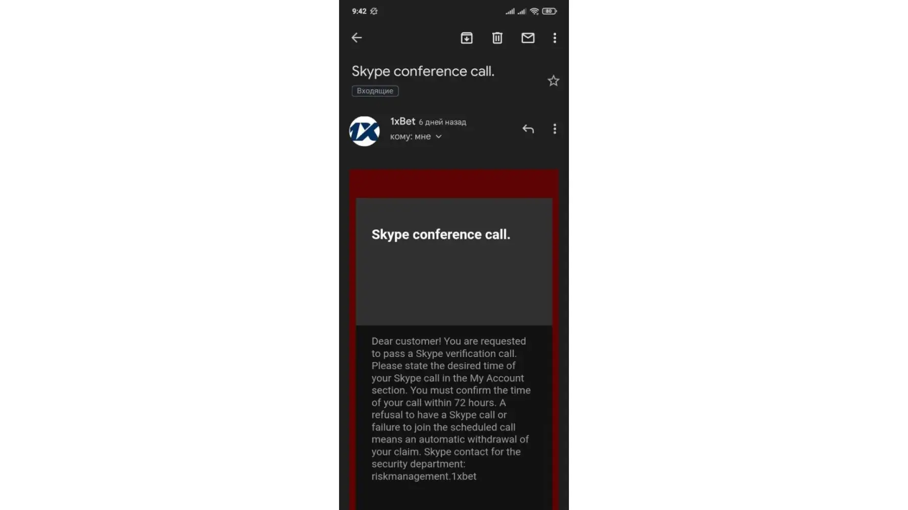 I also mailed security team security-en@1xbet-team.com