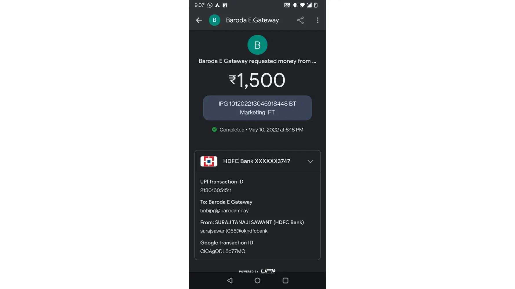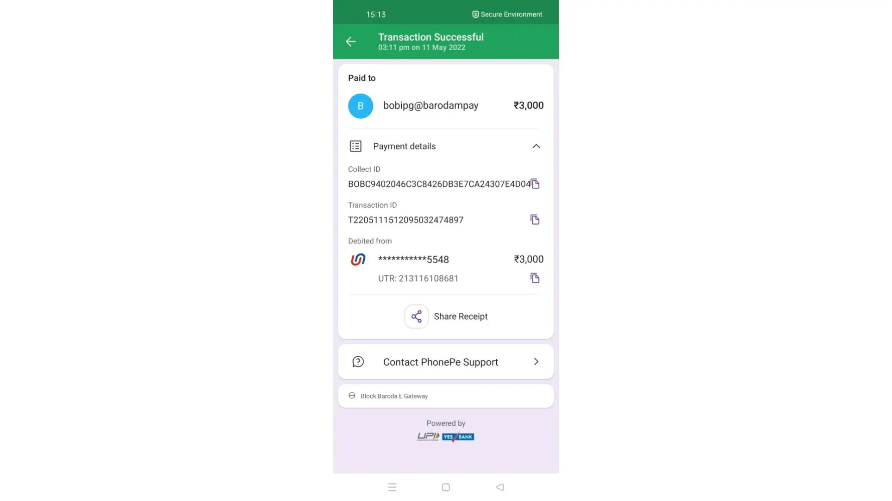 I deposit 3000 amount UPI fast baroda e Gateway till now I didn't gate any refund or credit in my game I'd