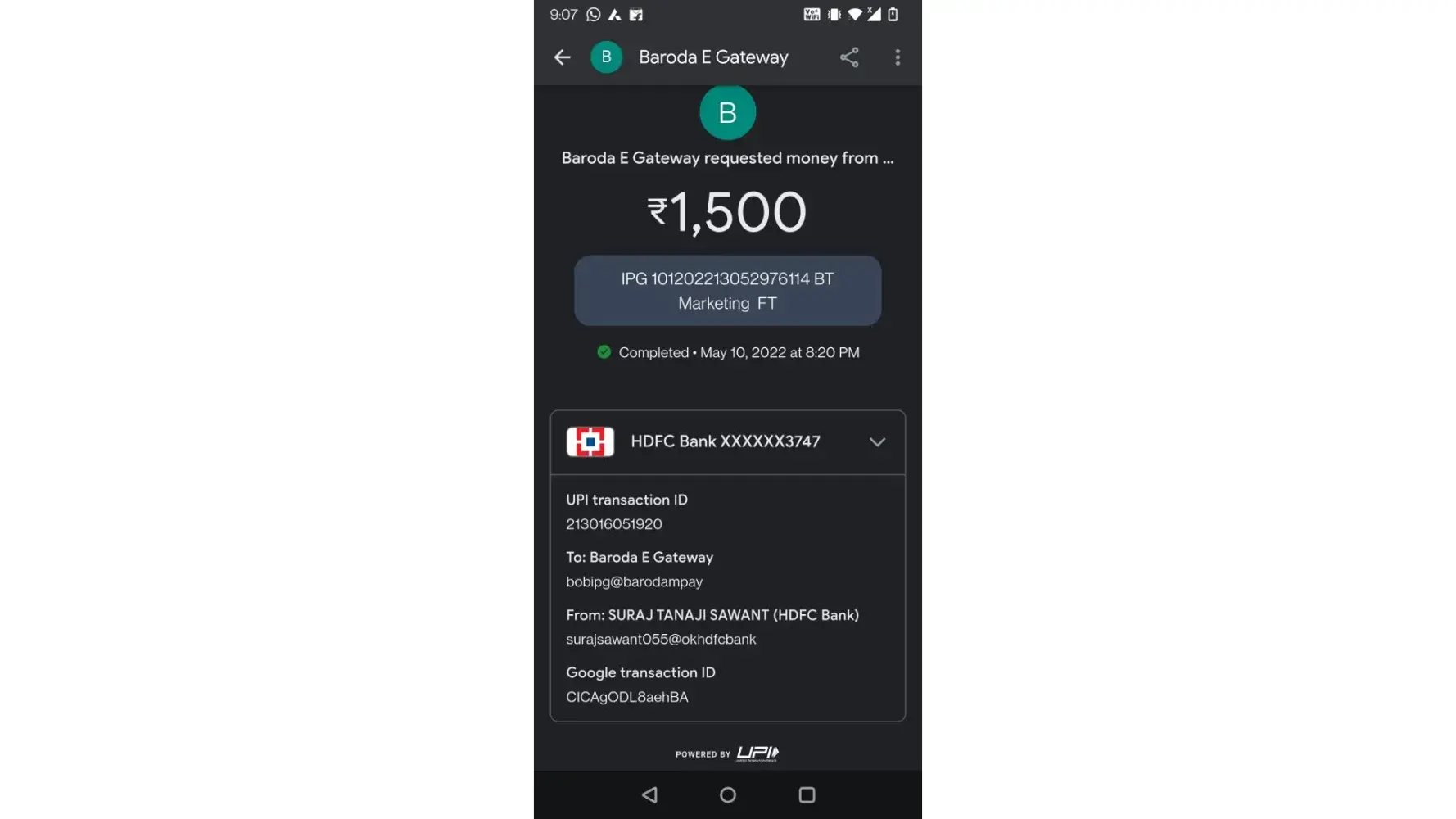 I made a deposit of rs -25000 through payment gateway 'UPI Fast' to 1xbet merchant partner 'Baroda E Gateway', it’s been more three days now the amount has not been credited to my gaming account