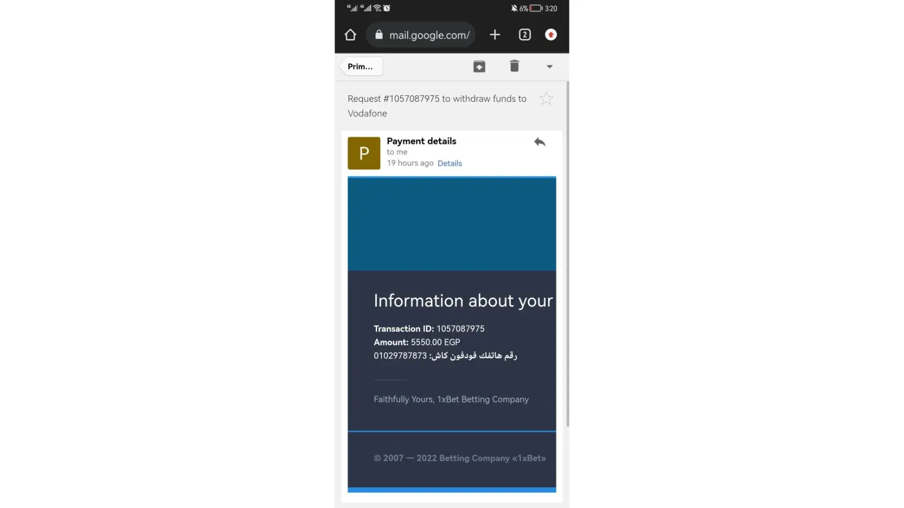 Iam transforming the 3000 rupees on 11/05/2022 into 1x bet but iam receiving only 400 rupees only in my account .and iam also consult the support gamil but there is no response.