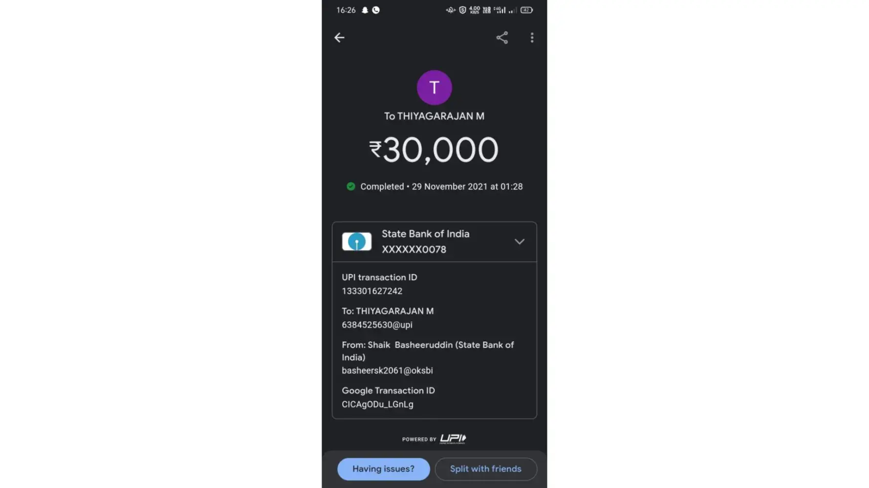 I have sent payment screenshots, Utr Id , bank statement and transaction date and time.