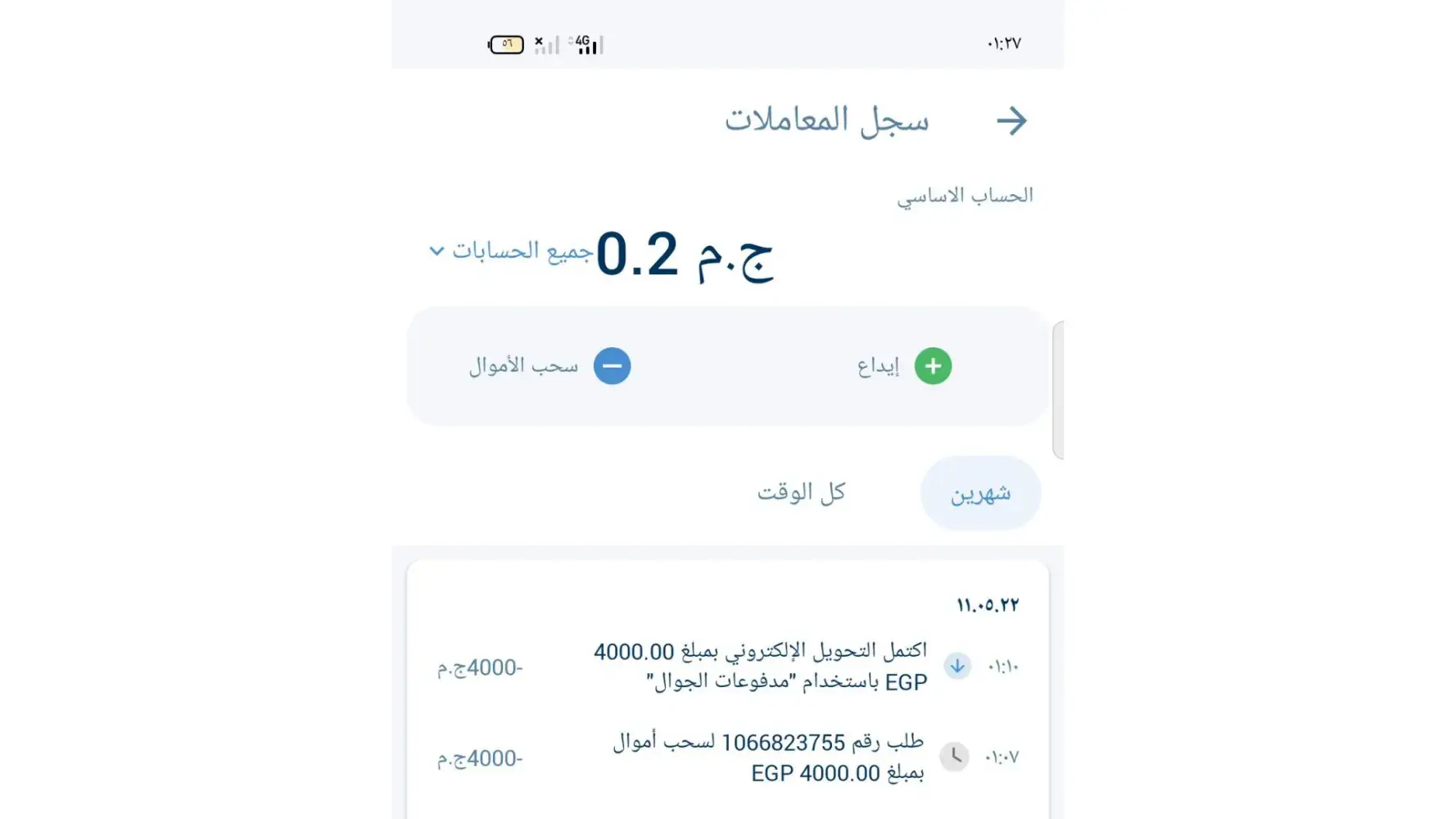 The process is a withdrawal of 4000 EGP that did not reach me and will not reach the number [protected] because this number was closed to transfers by the telecom company for a whole month