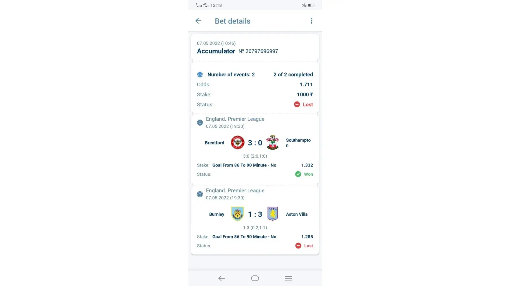 I played a bet on 07/05/2022 Football match between Burnly vs aston villa and i chose the bet 86 to 90 No goal intervel. There is no goal happened on the intervel. But 1xbet marked as lost. In england premier league Official site & Google updates are showing that a goal after 90+1 minute. But its not in 90 Minute. Then how my bet was loss.. Check the screenshots of my bet & Premier league Official website update about the match. Lost the credibility of 1xbet. Very bad. Cheating.