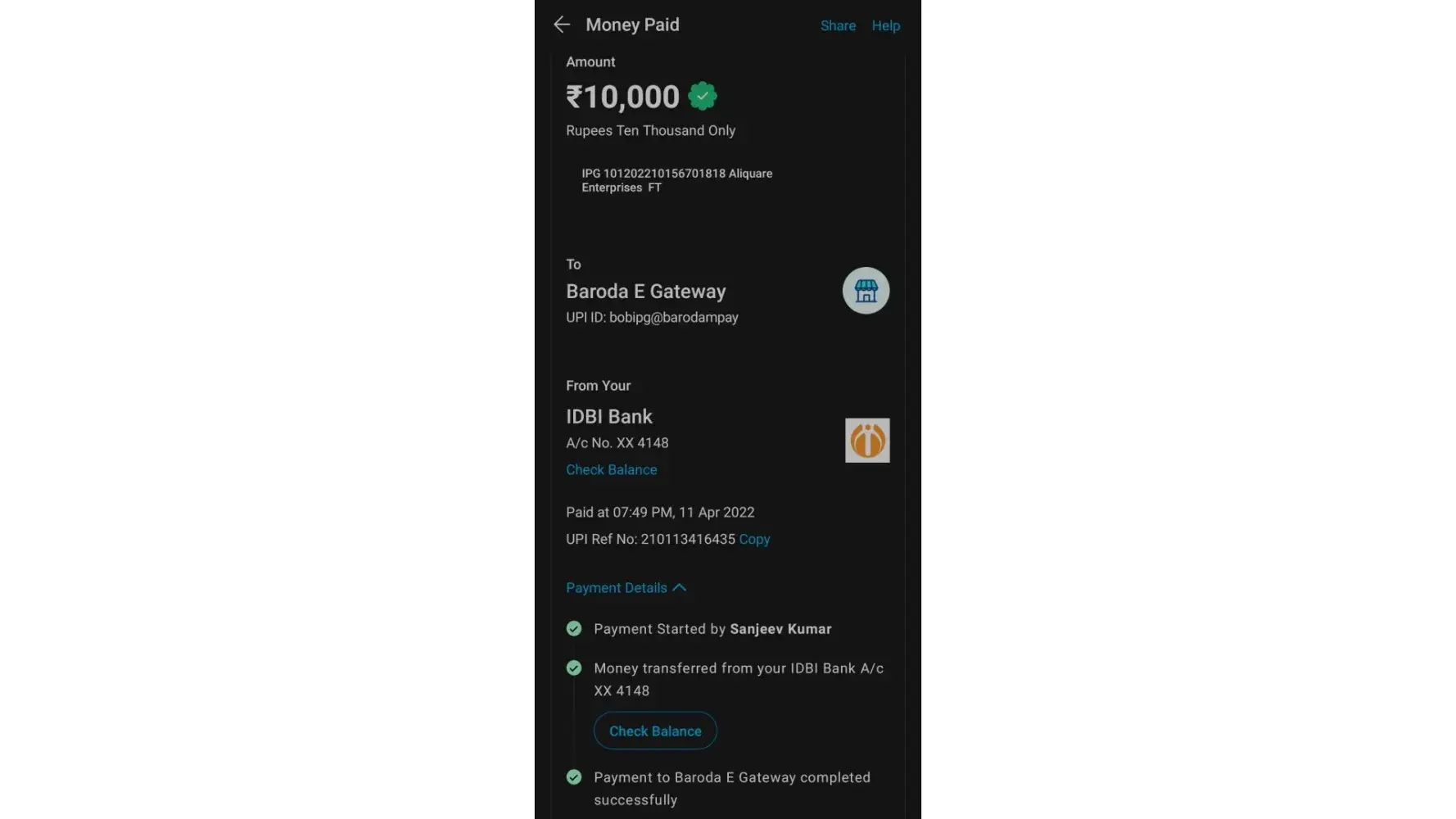 I had deposited Rs.10000 on 11th April 2022 through payment gateway 'UPI Fast' to 1xbet merchant partner 'Baroda E Gateway'. But I didn't get the money till now. It has been more than 25 days. I have mailed them with all the details with transaction statement pdf, but still didn't get the money refunded. They first said to wait 14 days. After that when i provided all the details they again said to wait and but nothing happened. Its almost 1 month and they cannot resolve an issue. I have also messaged them in facebook. Never faced such problem for a year but now they are acting as a fraud company.