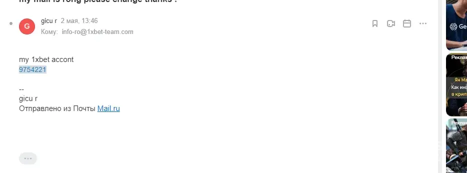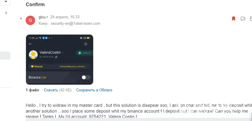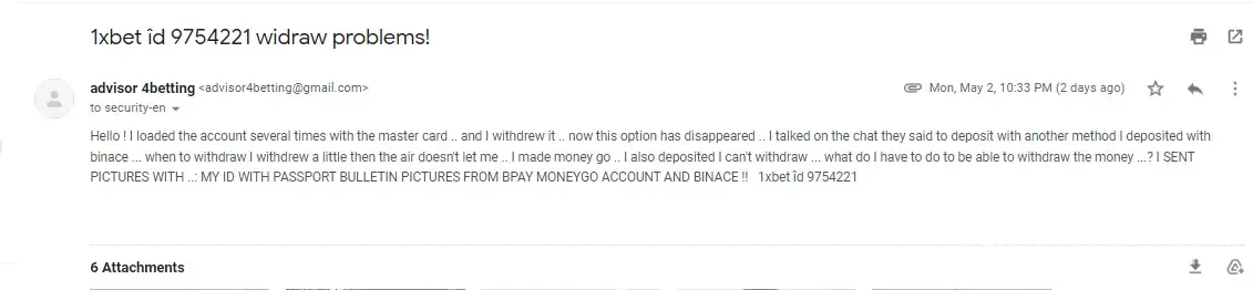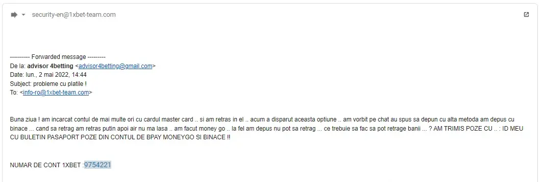 Hello I lost my email conversation with 1Xbet after I accidentally deleted it.