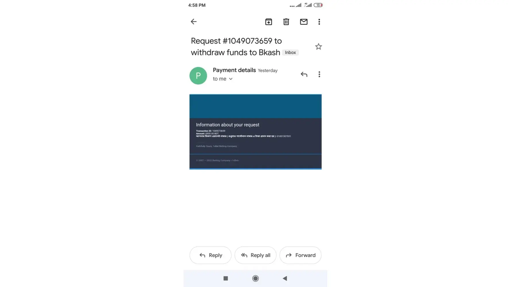 Desired outcome: Please either refund me or send the amount my 1xbet account