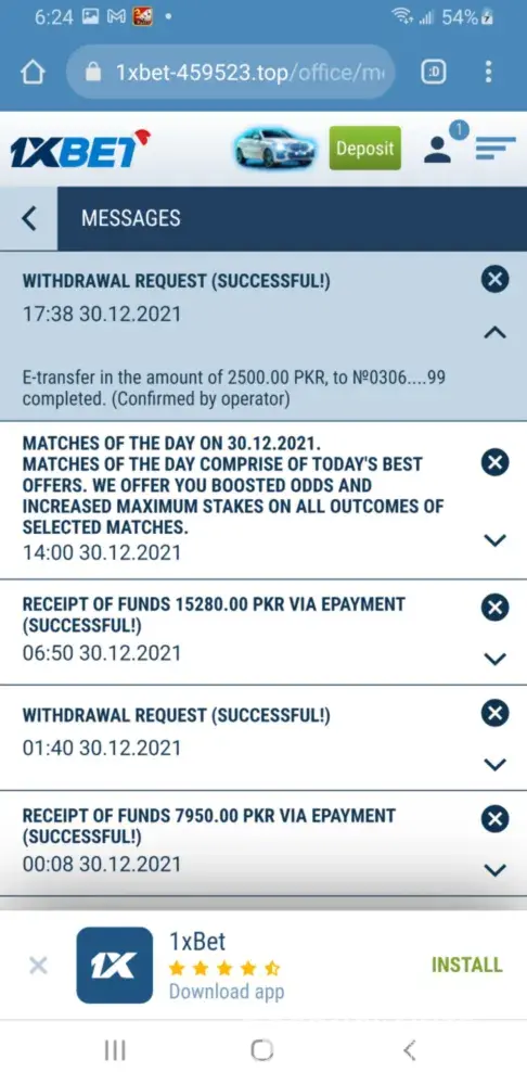 One more thing Last Week I make a Withdrawal of PKR2500 from Bank Transfer to Jazzcash but I just received PKR500 I spoke to the Customer Support about it he said that your complaint is fwd to the Banking Team next day I again ask the Customer Support he suggest me to write an email and Screenshots to [protected]@1xbet-team.com so I Äid and no reply from them than 3rd day I sent them another email with the fully details but no reply from them they rob my Rs2000 withdrawal and a winning bet return of Rs2335 Total they owed my PKR4335