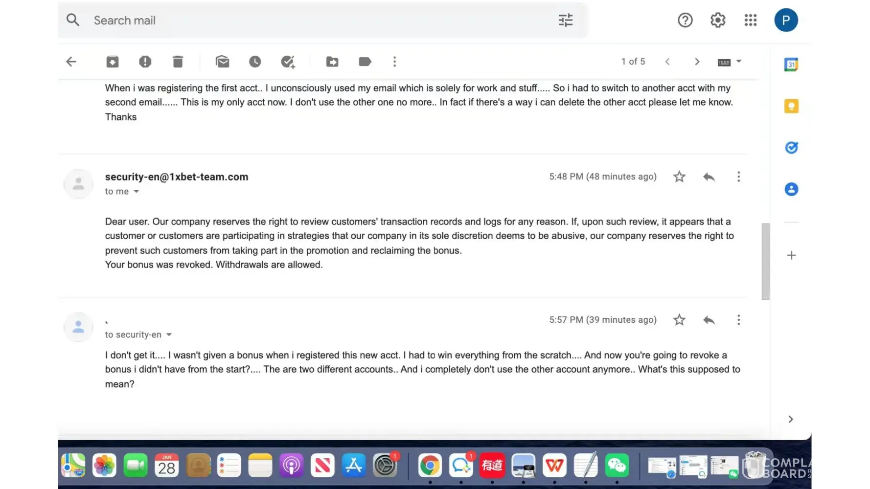 Hey there, i'm writing to complain about what transpired between me and your security team today...so i registered a 1xbet acct before i deposited some money and got a bonus which i was very thankful for but when registering i used my work email acct, so informations all go to that acct, i didn't like the fact all that was being sent to my work email so i had to change the email which means opening another account, so after opening a new acct i deposited money myself and I DIDN'T GET ANY BONUS, i didn't moan about it, i just played the game the right way and won a decent sum of money, but when it got to the time i wanted to withdraw some money from the acct, they demanding that i go through some verifications and submit some documents and stuff, which i did.