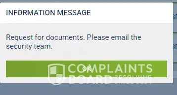 On 30 Jan 2022, I tried to withdraw via an e-wallet. I received this message: "Request for documents. Please email the security team."