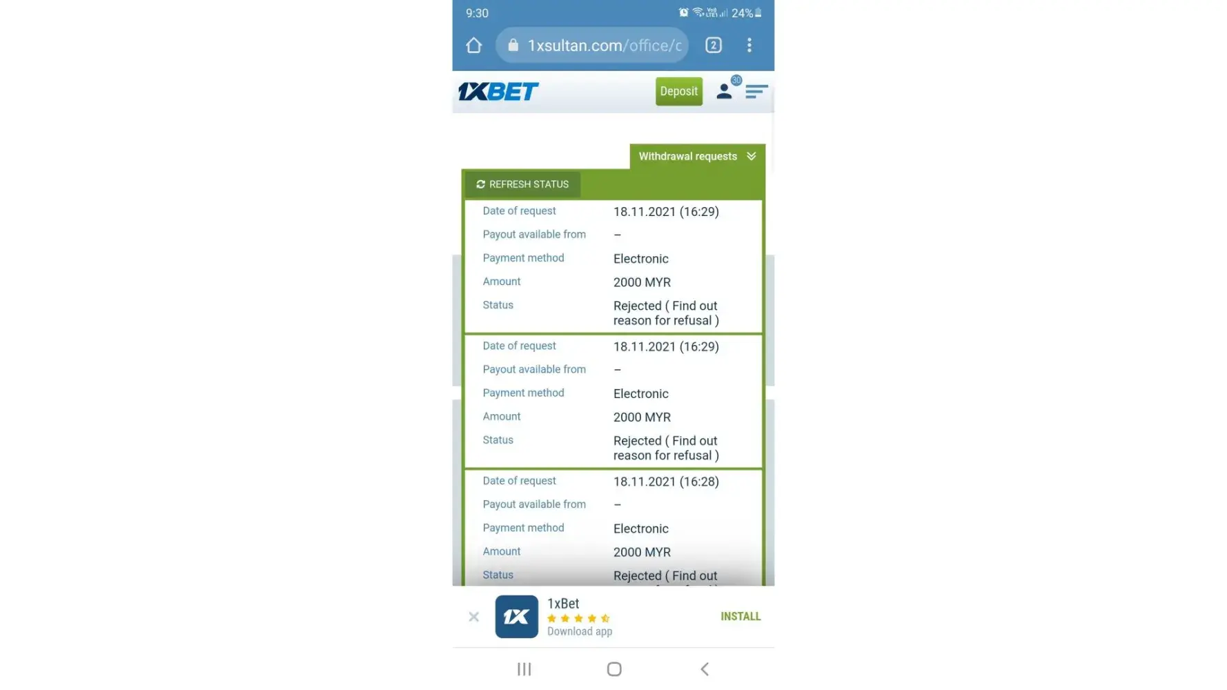 1xbet There is no love to open my account and return my money