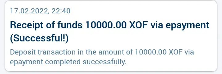 I made a deposit of 10000f to ID [protected] on 17/2/22 around 22:40, the money appeared in the account and later was taken with me staking any game