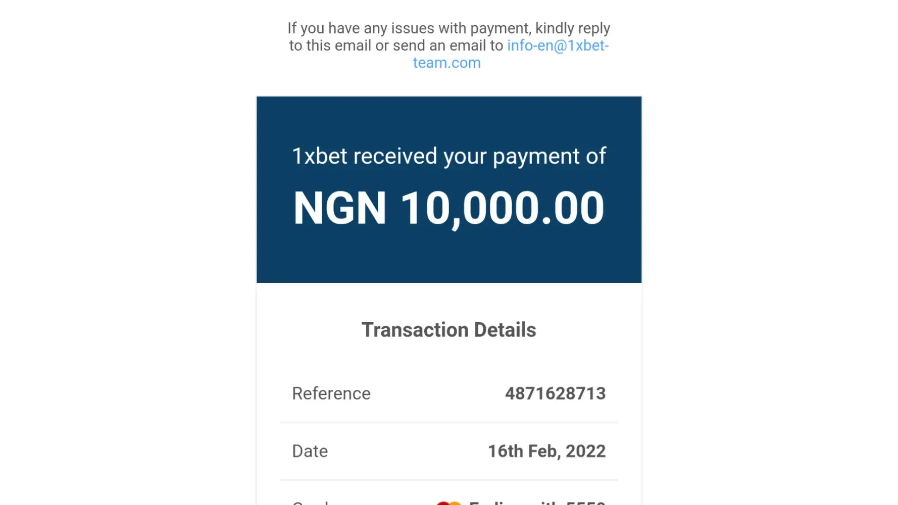 3. On 10-02-2022 I noticed deduction of N10, 000 in my gaming account and the customer care asked to me to contact security team for support.