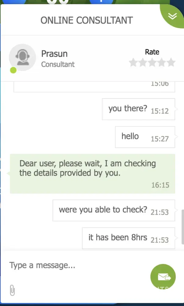 This is the unfortunate state of chat support it has been 8hrs im online and they simply said they are checking