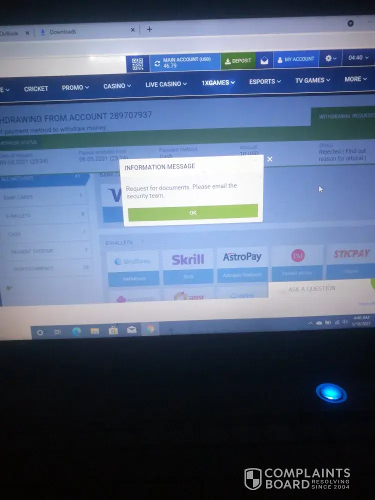 Read full complaint and 9 comments1xbet/account blocked with 879.42 euros