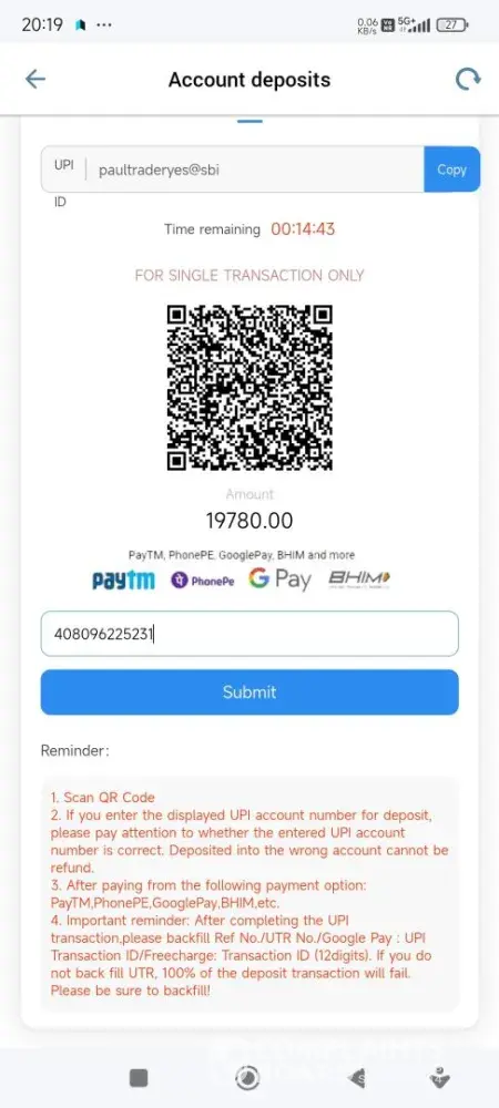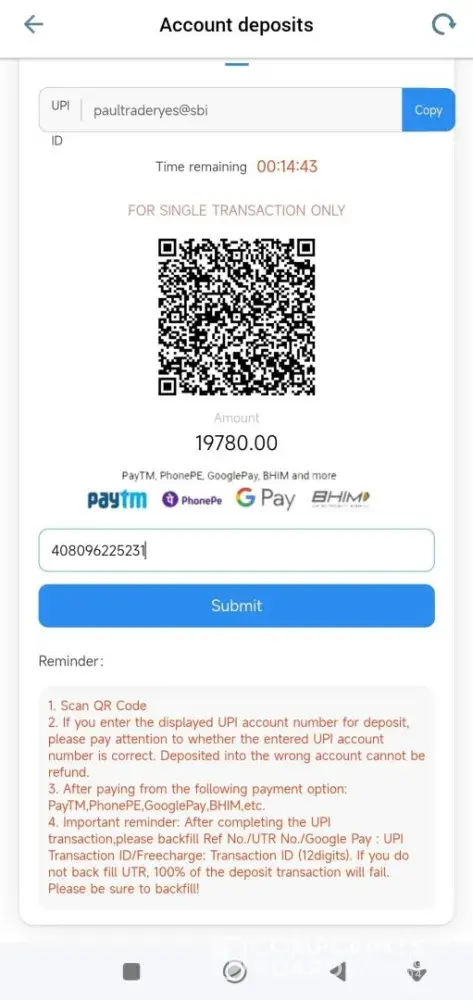 I have deposited 19780 rupees on 20-03-2024 through upi fast method but it is not yet credited its been 16 hours and i have been reaching out to support and no one responds well.. they asked me to send screenshots and i have sent everything including bank statement.