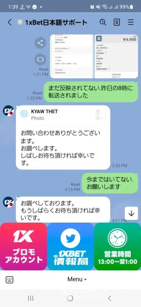 I have made a deposit since 22:00 on the 1st of the 3rd month and the money has not arrived in my account.I had to wait 3 days to make the deposit last weekWhat is written on 1xbet is Express Deposit, and I always have to wait for a long time.Instead of express deposit, change it to very slow deposit.I am very disappointed.I want money in my account today, please do it quickly