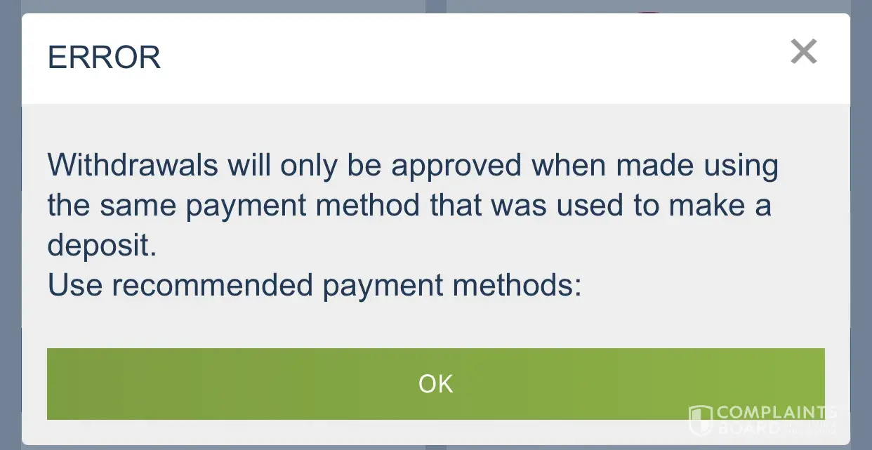 If there is no restrictions why do I get this message ? I’m only trying to withdraw using the same method I deposit…