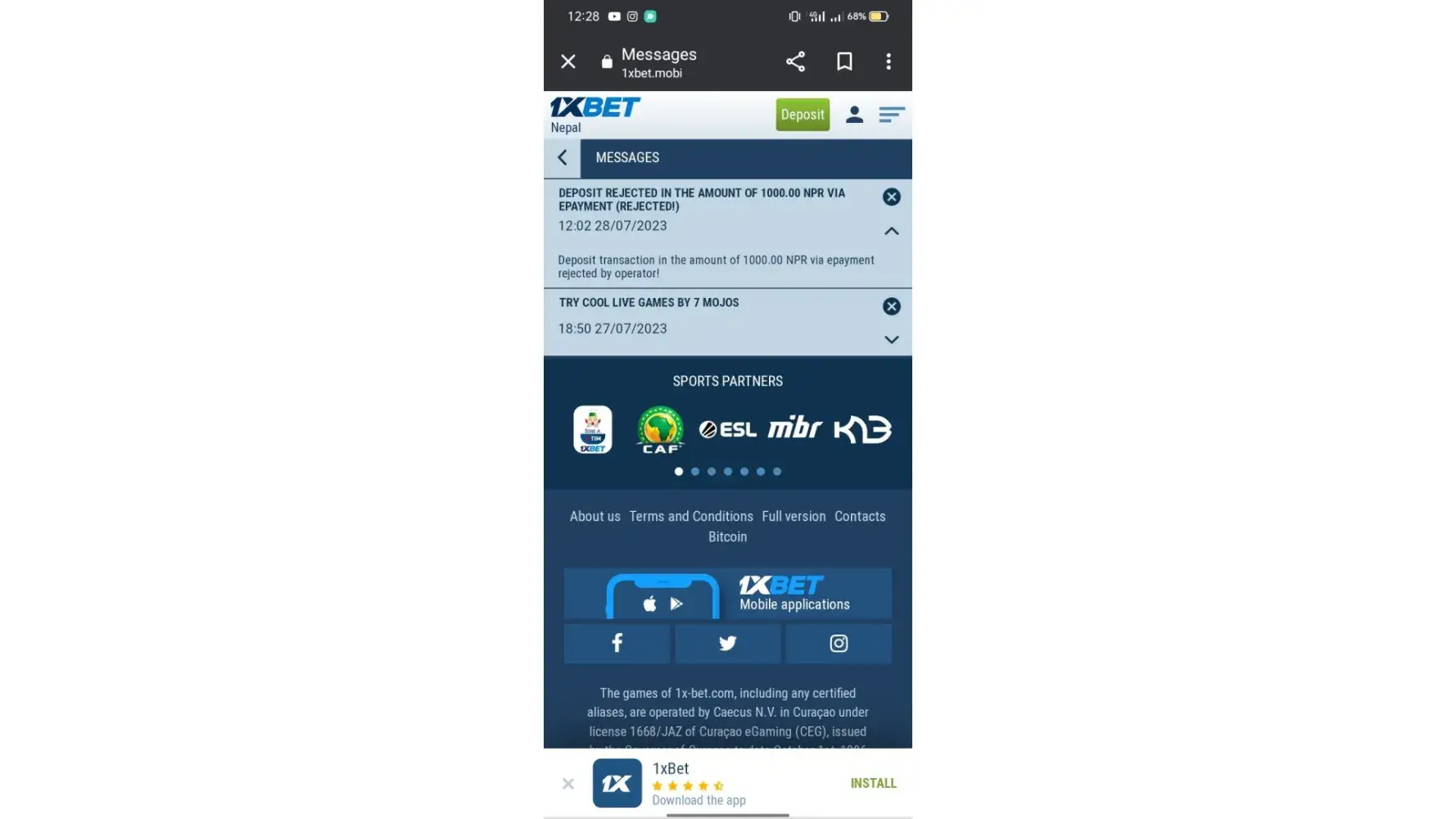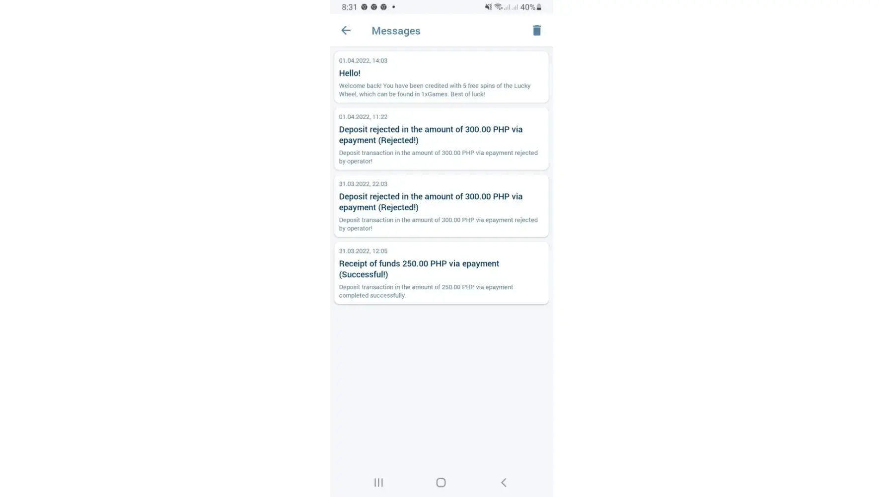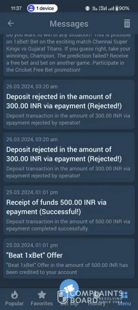 1xBet - Deposited inr 2300 not credited to 1xbet account 11