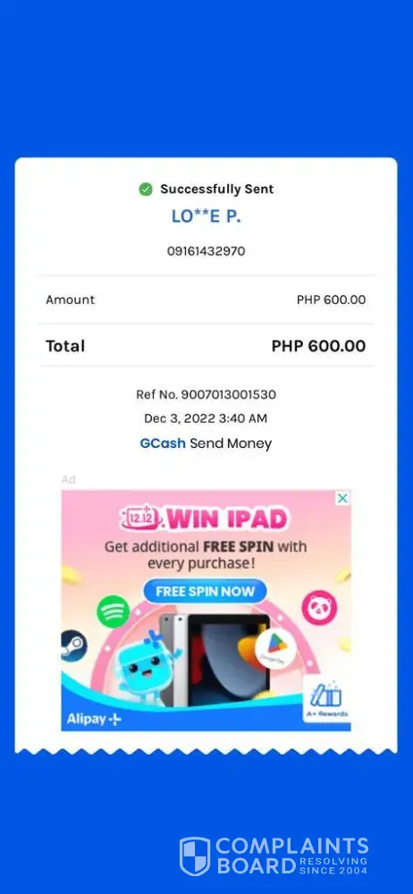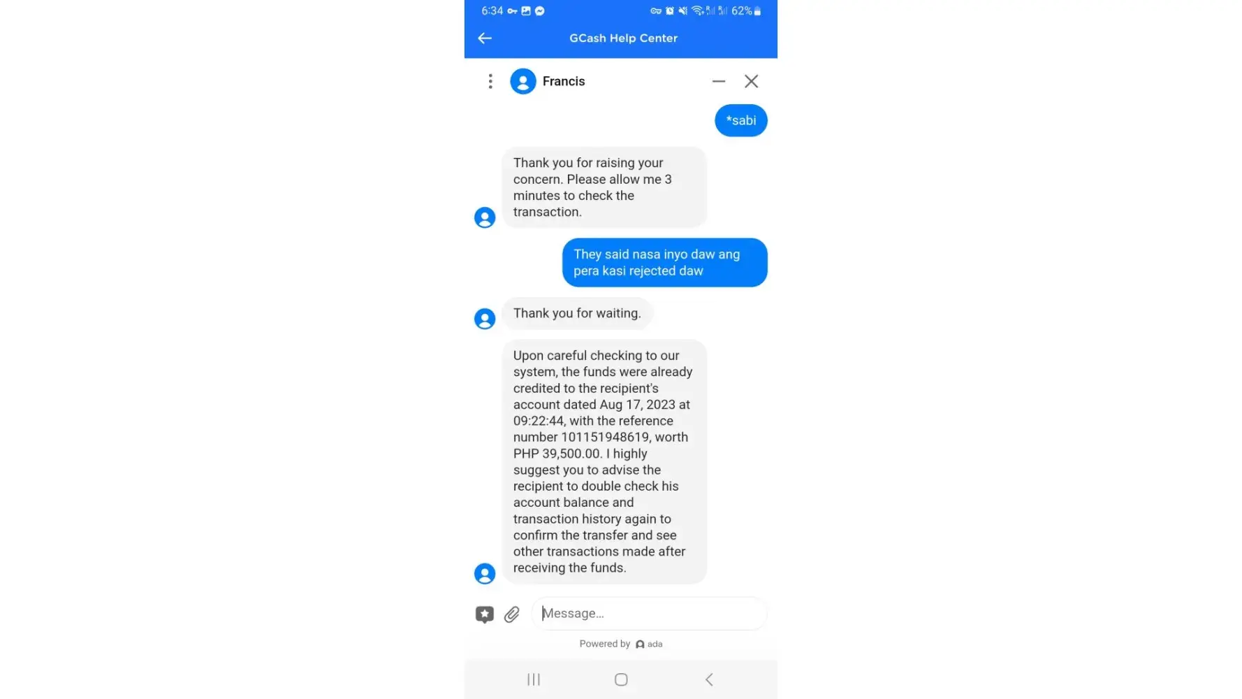 Operator rejected my top up request. I deposited 100, it was rejected but deducted on my gcash account.