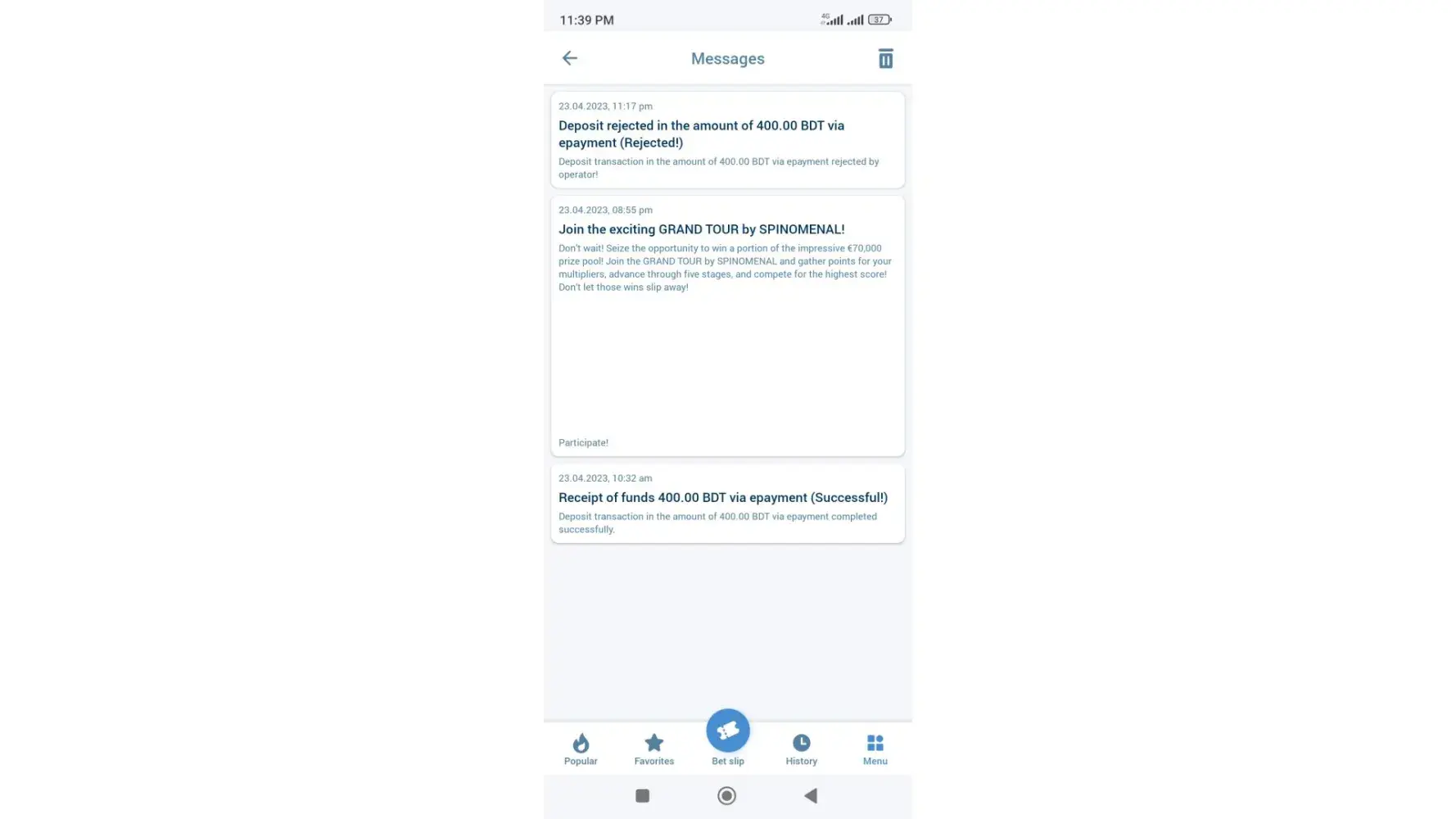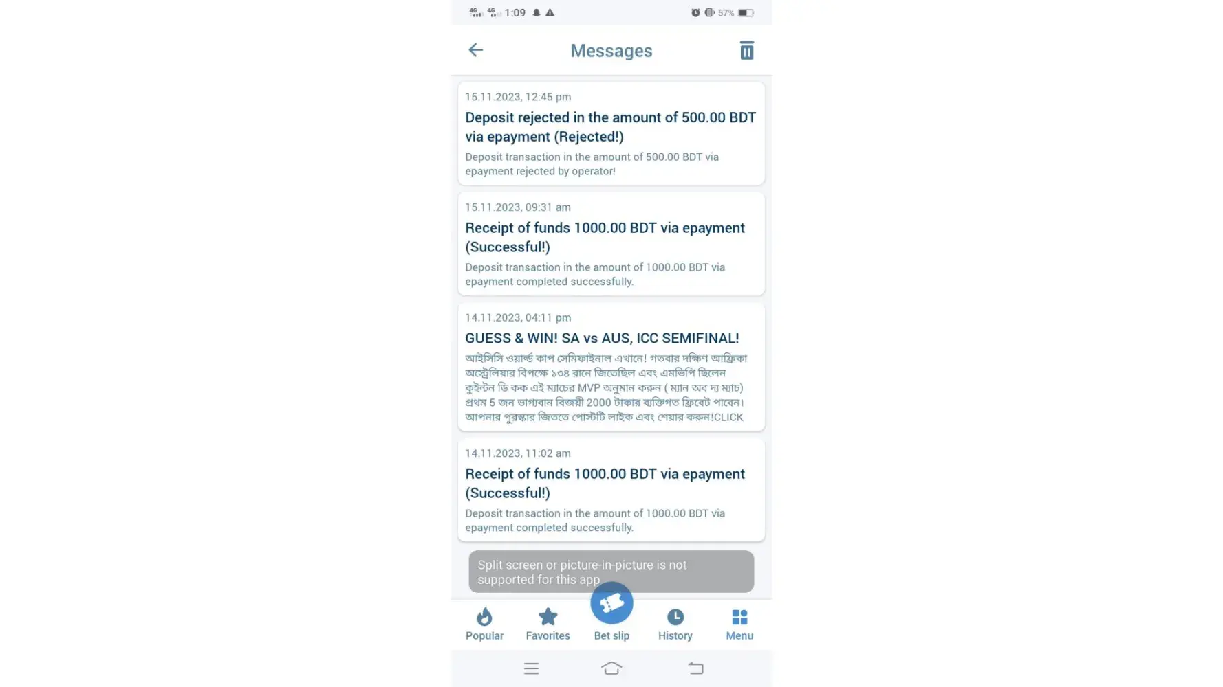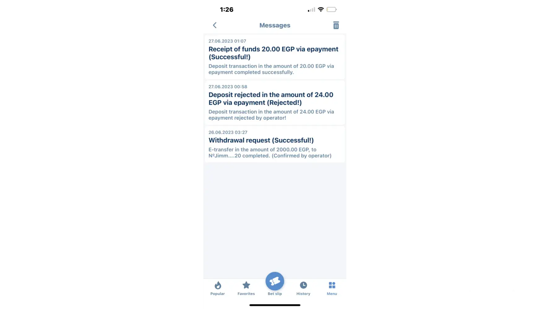 1xBet - I made two bets I cannot view it on my history n also the payment I made it’s not in the history 1