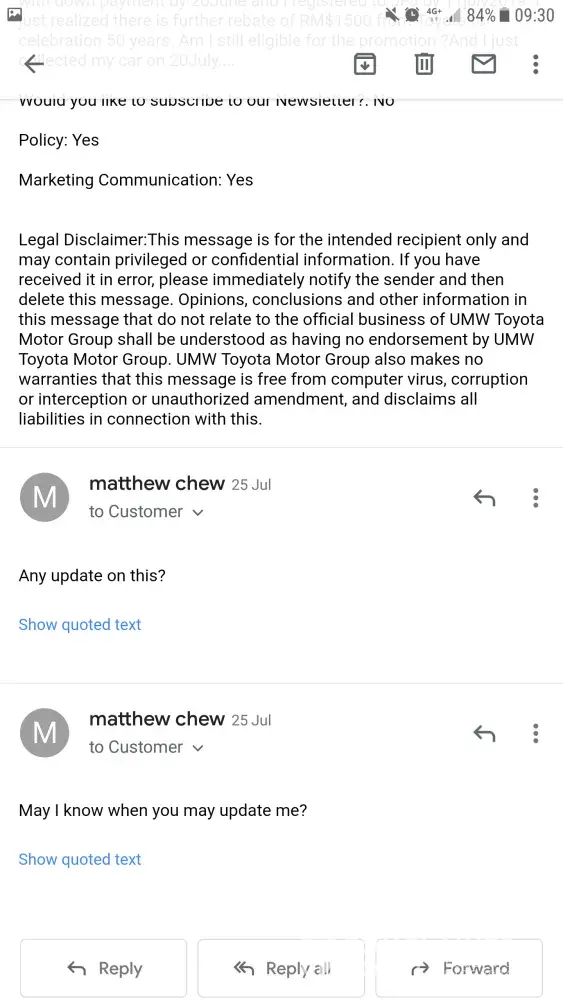 From 7th july till date means 10th august my complaint is not resolved. Your customer care should be closed if they cannot resolve the problems in 1 month and above. I have suffered from many diseases in my family due this car problem and now i fell like to sale this car and never buy further this car at free also.