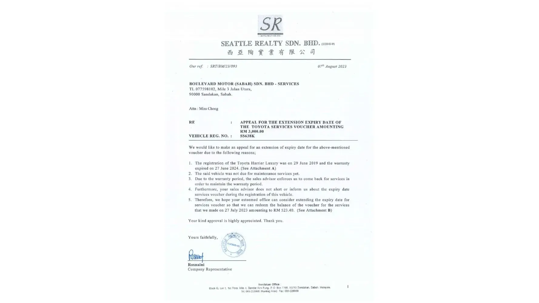 We would like to make an appeal to extend the expiry date of the services voucher provided by toyota company during the registration of our vehicle. Kindly refer to the attachment provided below for further explaination or any queries can contact us at [protected]