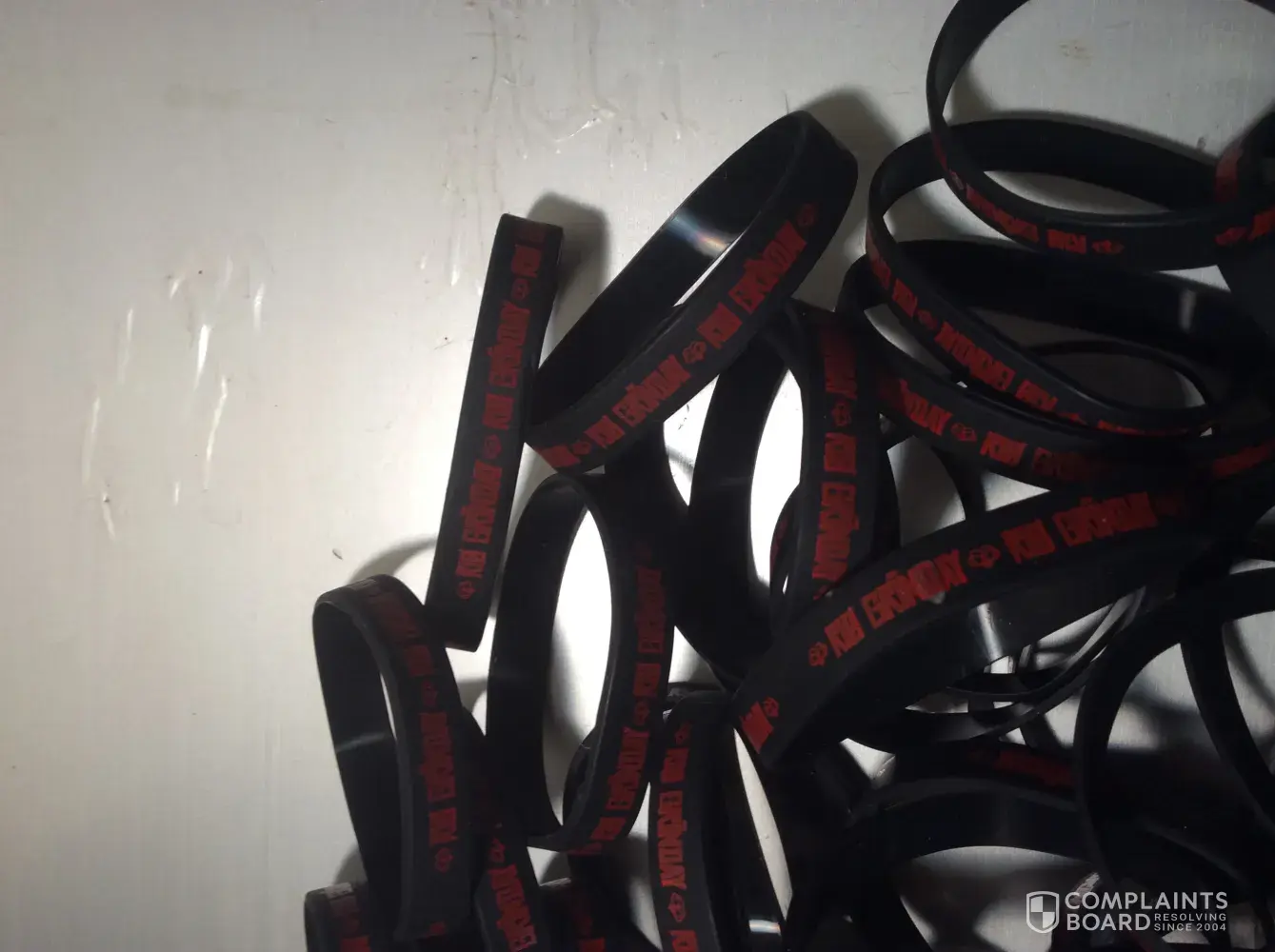 Horrible experience. The first order was late and not done correctly. There were supposed to be words embossed on the inside. They redid the order. They were shipped to the wrong address and I had to pay nearly $60 to overnight half of them to an event. The words inside required x-ray vision to see as they were not embossed as requested. Their customer service is done on a portal and they are slow and do not follow instructions. I am still waiting on a resolution. The quality of the wristbands is poor. You can see crude cuts instead of straight edges on the bands.