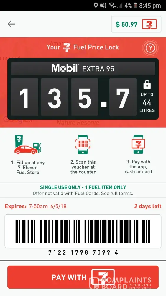 I locked the fuel price $ 1.35 .but when i filled the fuel and asked the operator to scan my lock price code he said our system is down i cant scan it. I had to pay full amount i mean the rate at that time of 95 fuel. If i have to pay the same amount then whats the benefit of lock the price?Please fix my problem .