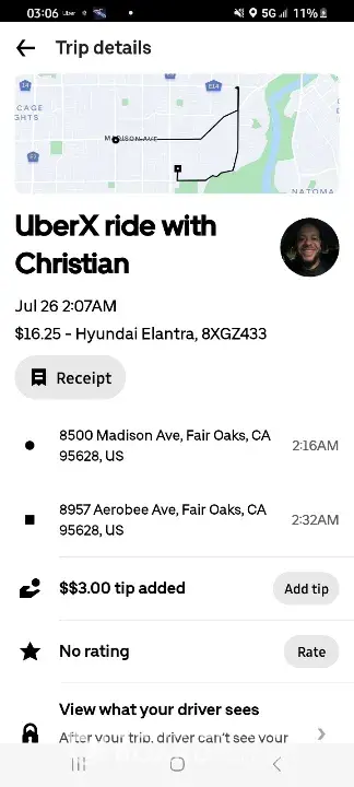 On 07/26/23 I booked a round trip Uber to 7-Eleven at 8500 Madison Ave, Fair Oaks, CA 95628. I arrived at 1:54am needing to put cash on my cashapp account which is done by the 7-Eleven worker scanning a barcode on my phone and of course paying the cash amount I needed added. When I arrived the doors were locked from the inside by a trash bag wrapped...