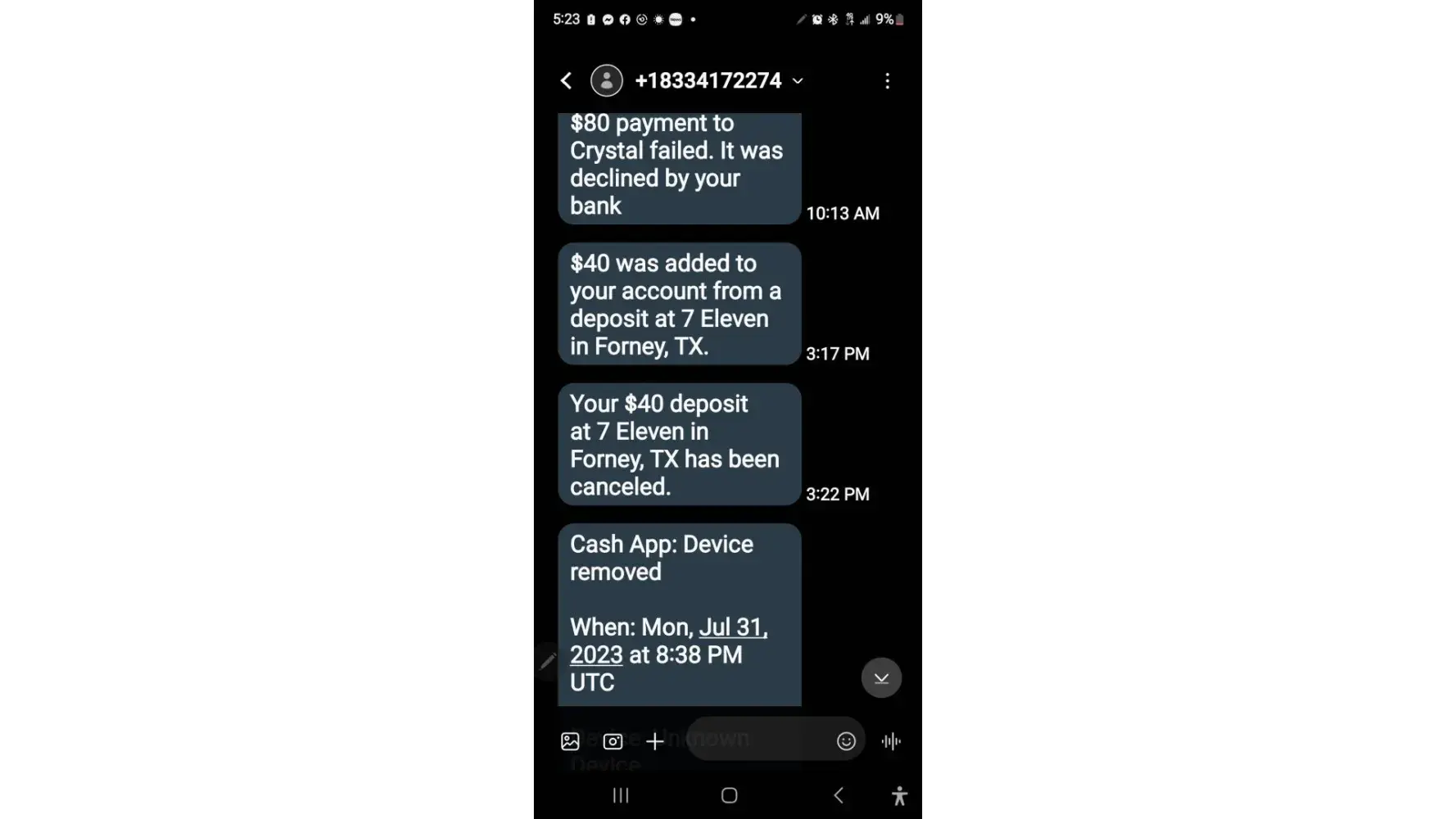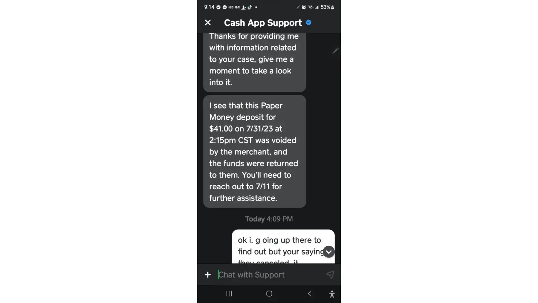I paid 41 dollars to be loaded on my cash app act it showed thay it was loaded then five mins later I got another text saying it was canceled I contacted cash app and they told me that 711 canceled it not them so I went bavk to the store the manager gave me. A.Complaint nu. Ber to call which I did and they were supposed to send me. An email. Which I never...